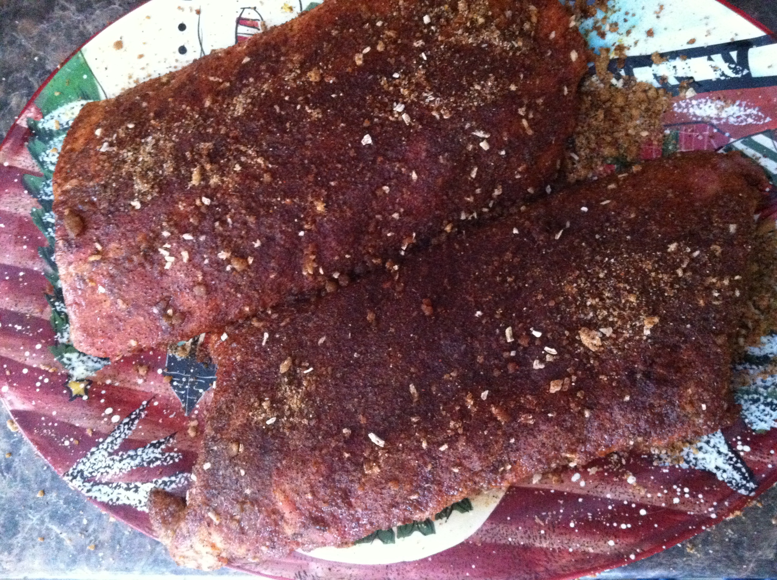 • The ribs had a heavy bark. Almost looked a little over cooked but they tasted great. The wife said they were the best in a while.