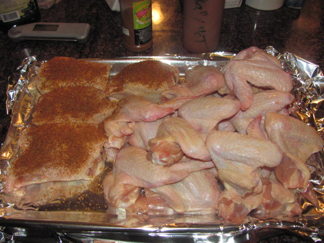 Now I am stuck with cooking something. Decided to do some chicken thighs for her and some wings for me. I normally marinate wings in Dichickos overnight, but fresh from Publix this is not an option.