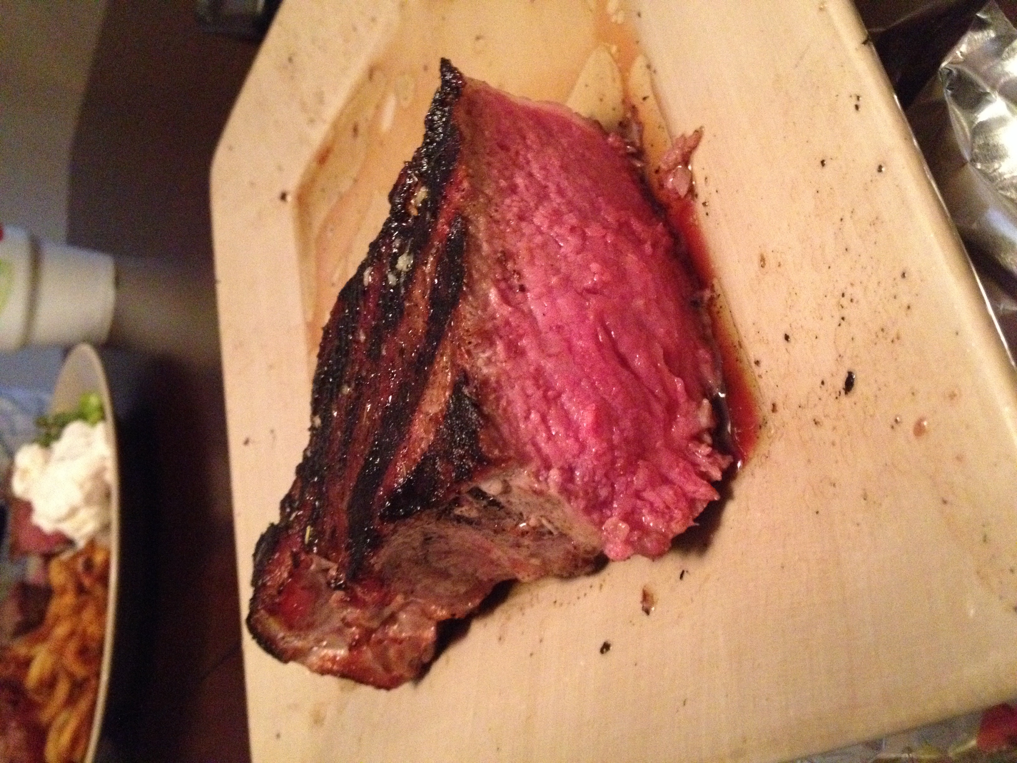Thanks all. I decided to do a test run this afternoon before the big dinner. I cut 9, 2inch thick strips out and took one to try. I put it in at 250ish with my maverick probe in and watched it until 106, then pulled it out and foiled it while bringing the egg up to 650-700 and seared 60 seconds on each side. I shoud have checked the temp but I forgot. After 10 minute rest I cut into it and was surprised to see little to no red. Only some pink. Not much gray either. I don't quite know how I blew passed medium rare but for tonight I am going to sear after they hit 100 degrees and hopefully will have better luck. Im glad I did a test run though, I was reading that others taking the meat up to 115 and then searing which would have been a disaster for sure.