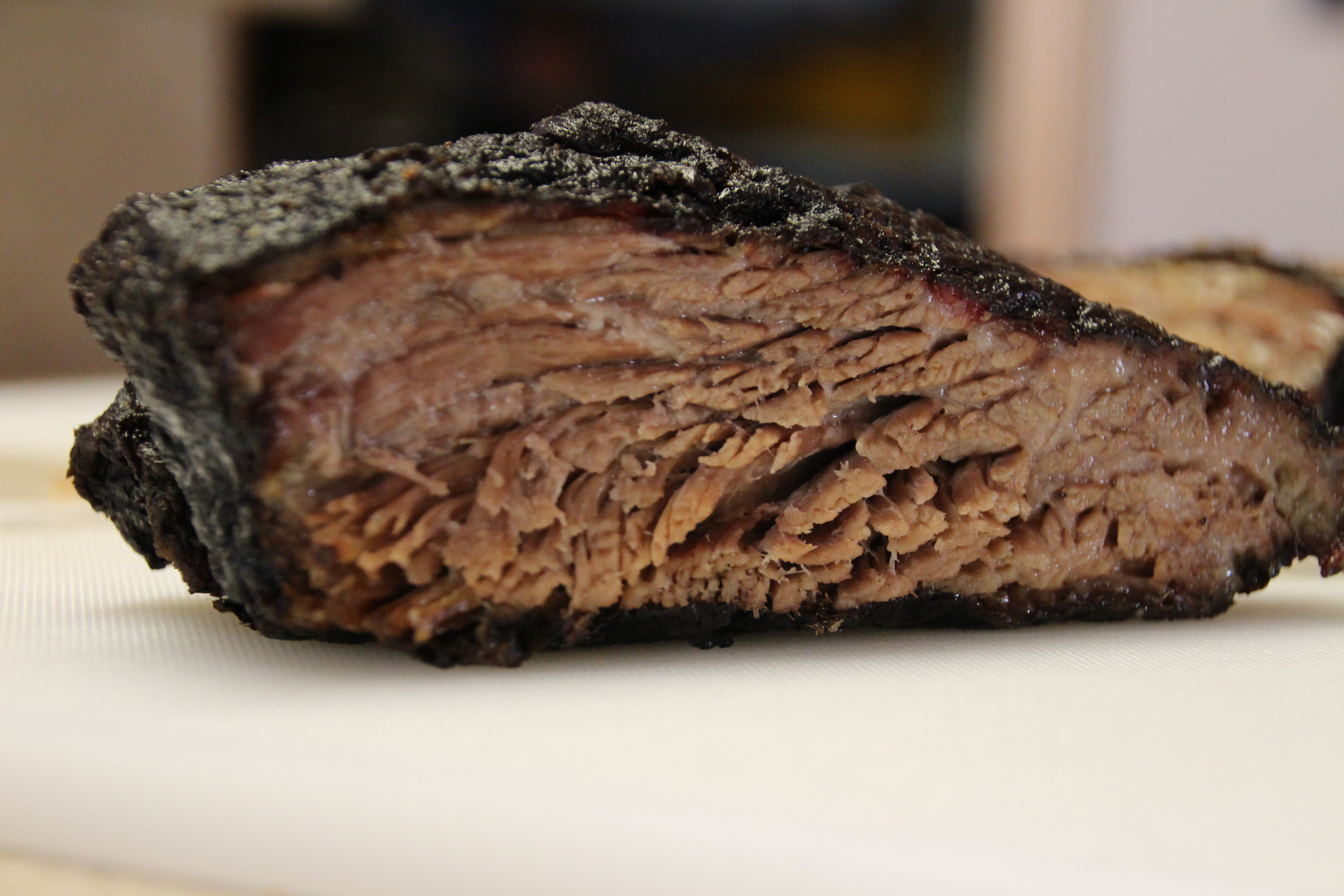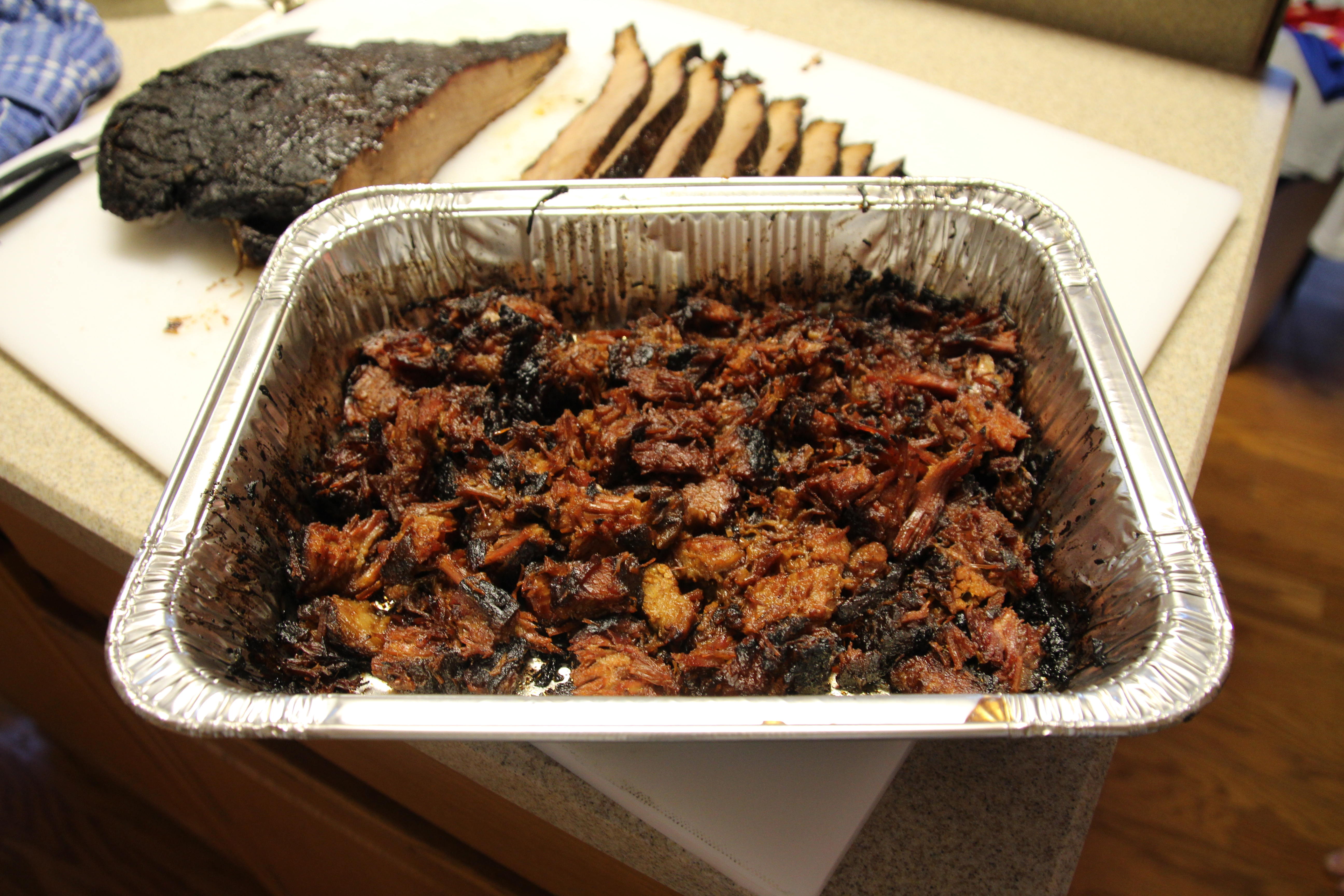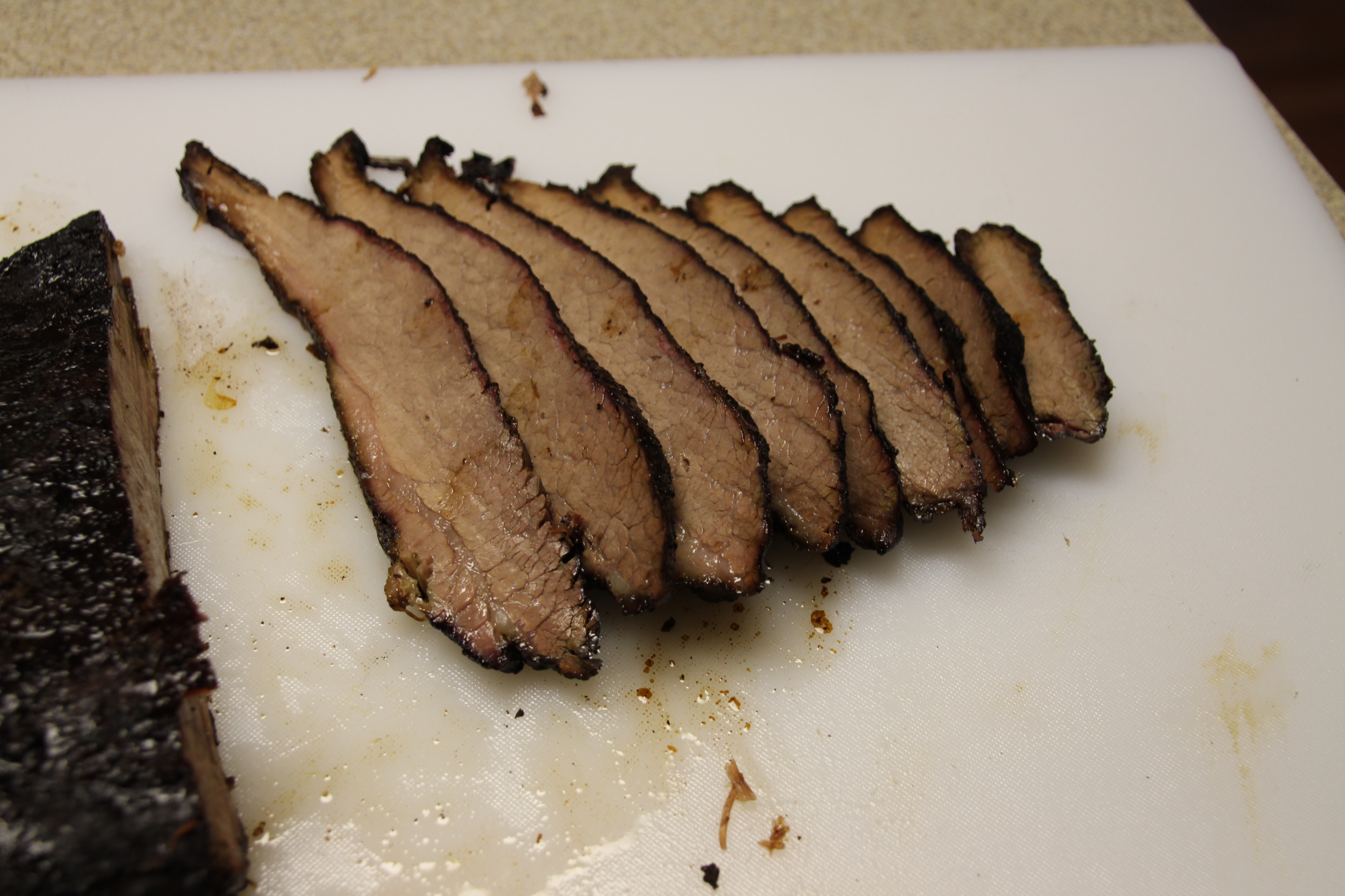 Since I helped you, I feel obligated to offer some critiques too as it will help you get better. The point either looks like it rendered a lil too much in some spots, or you shredded it with your knife. When carving, always watch how the grain moves and turn your knife accordingly so you're always cutting against the grain. Looks like you were riding the danger zone there and ended up with some stringy pieces. Pick up one of the knives I linked in my 2nd or 3rd post of this thread...you can thank me later.
