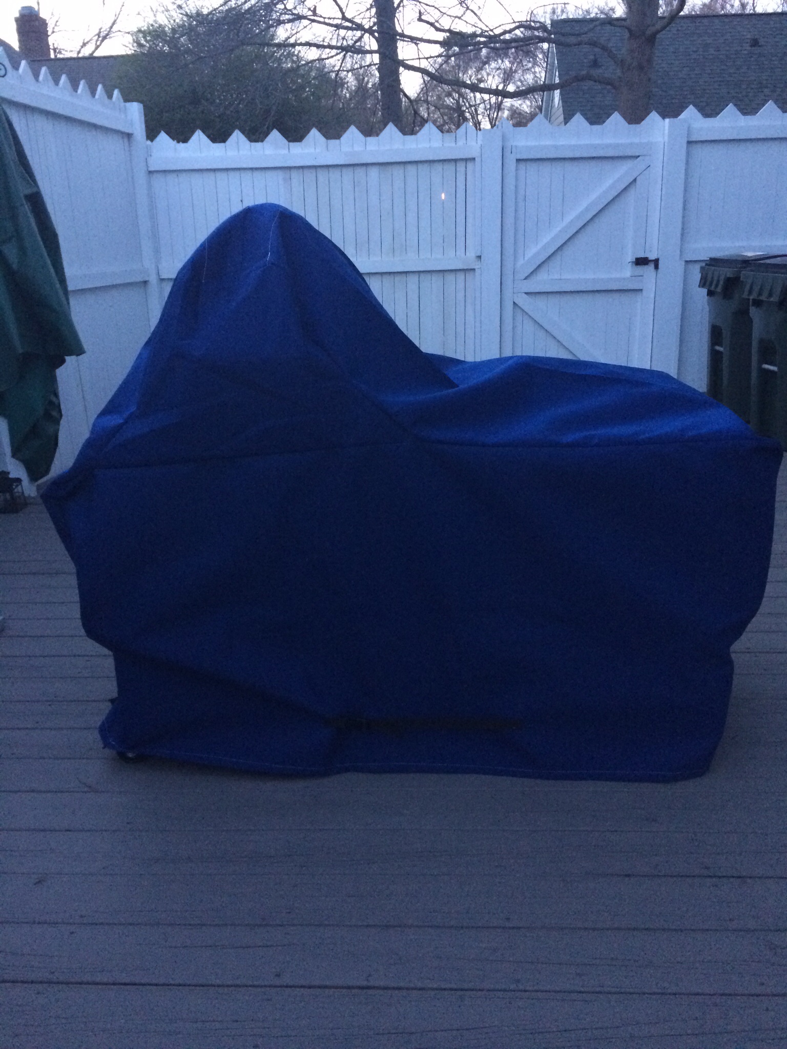 Found www.grillwraps.com thru searching the forums here and after about a month it's now protecting the egg. Sunbrella material to match the furniture and straps on each side for high wind. Very nice job by those guys. Highly recommend.