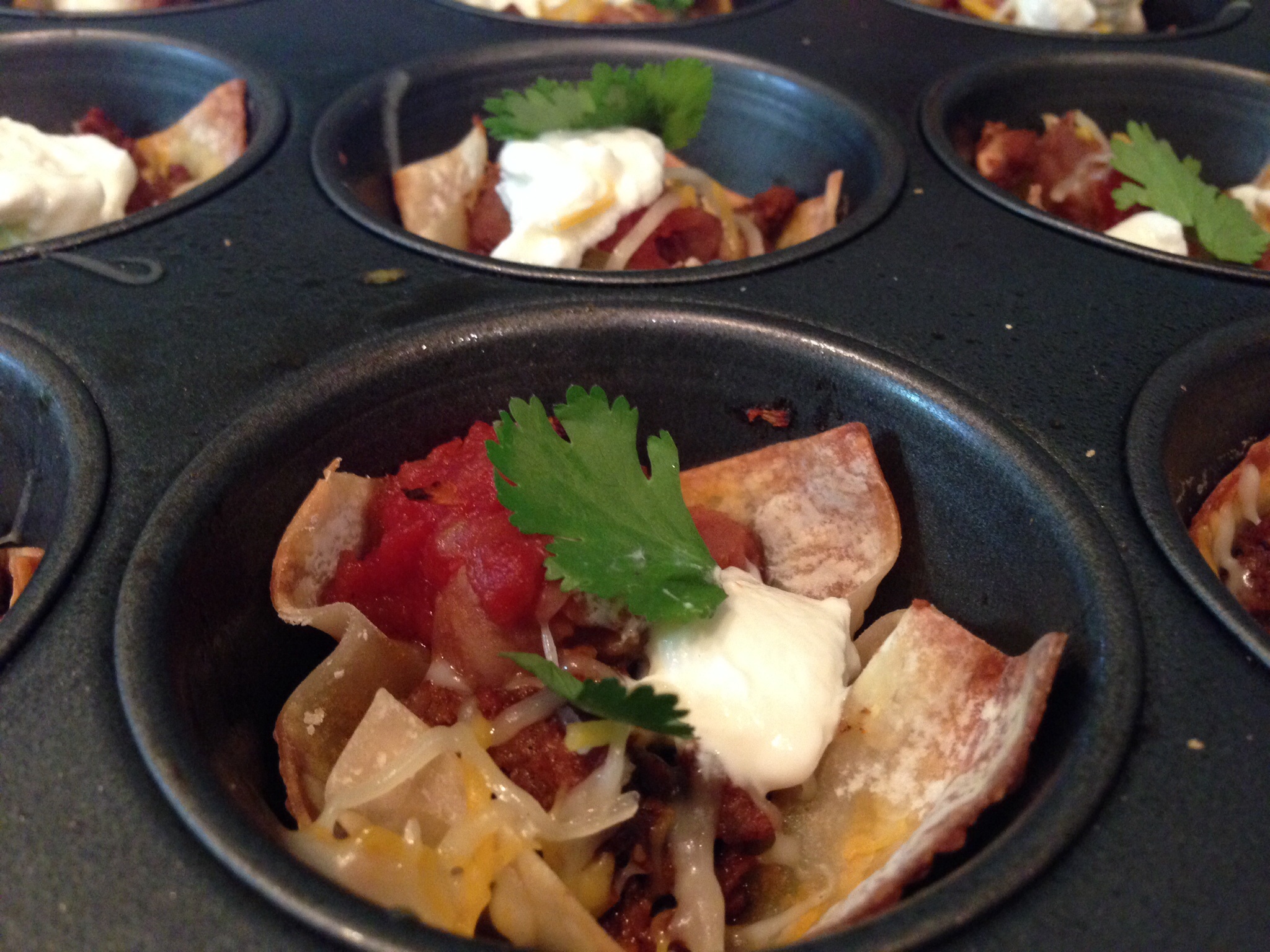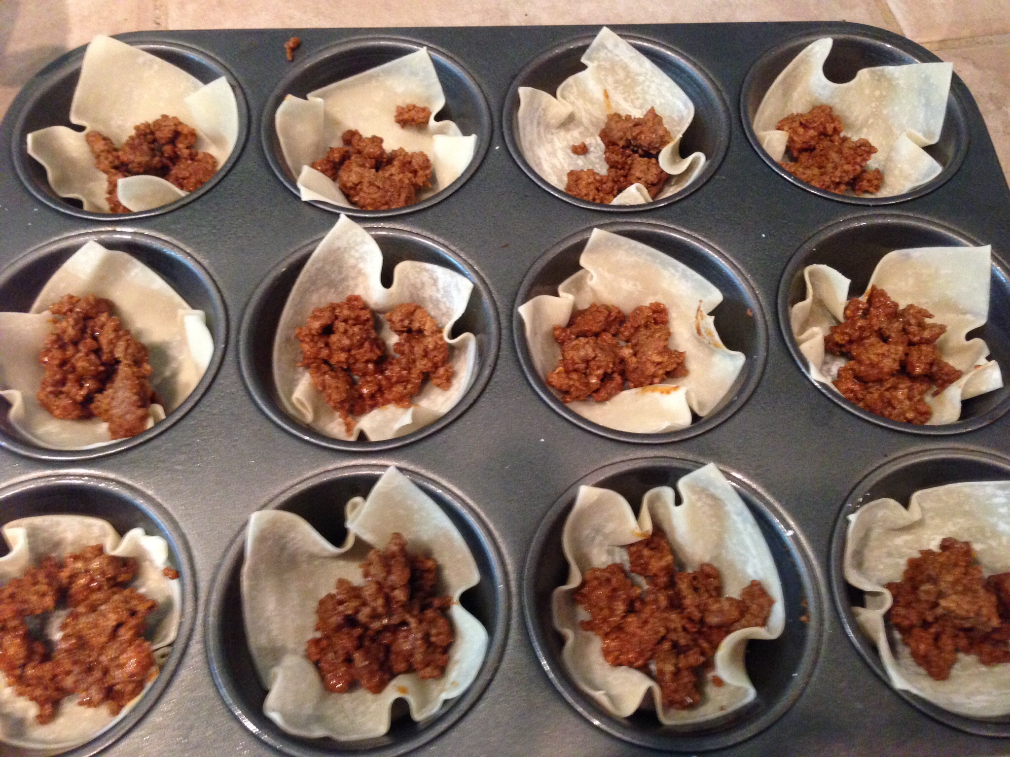 The wonton tacos were super easy: I put wonton wrappers in a greased (Pam) cupcake tin,maddened cooked seasoned ground meat, re fried beans and salsa. I put in Egg indirect at 350 until the corners started to brown and crisped up. Removed and added cheese mix, sour cream and cilantro.