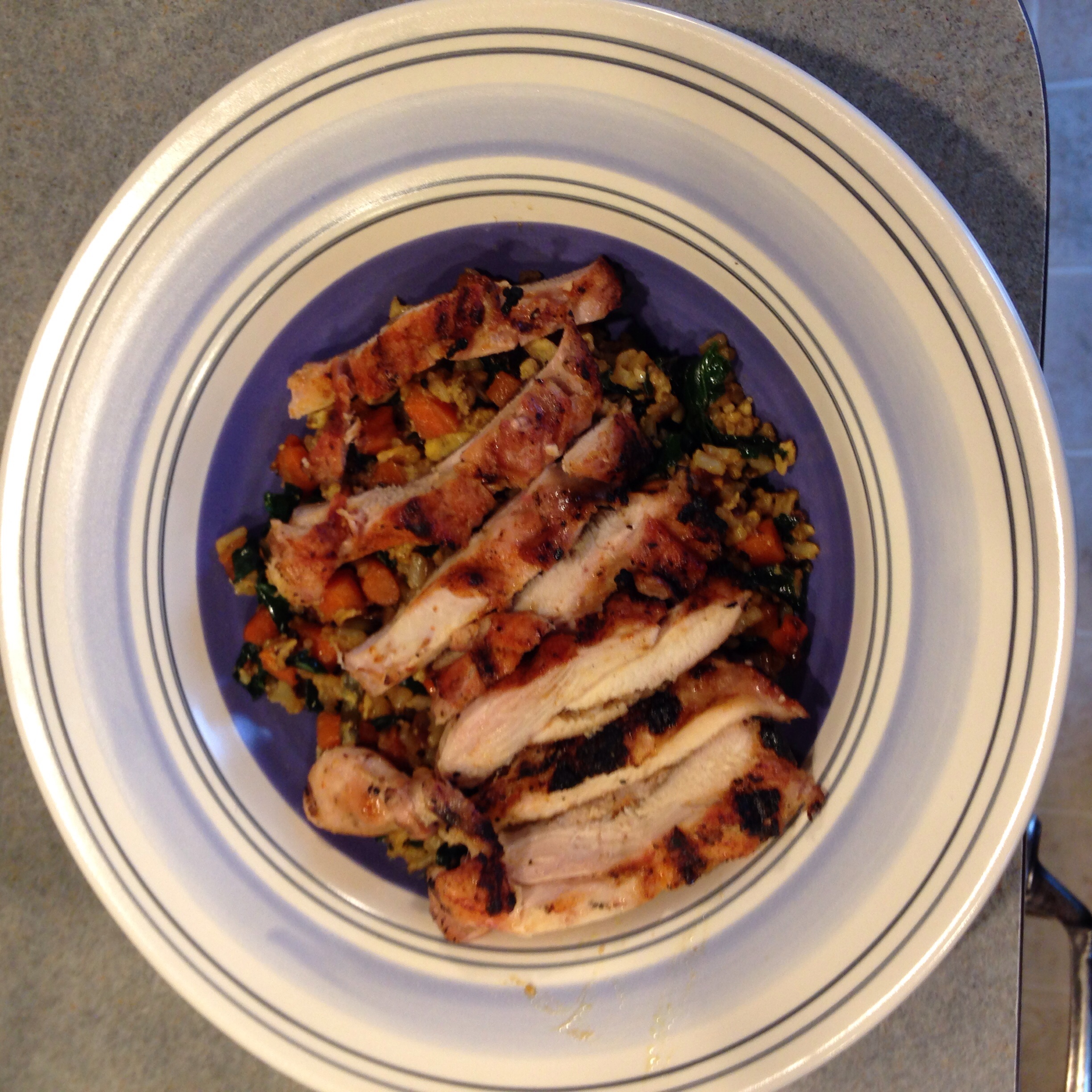 Topped it off with a grilled boneless skinless chicken thigh.