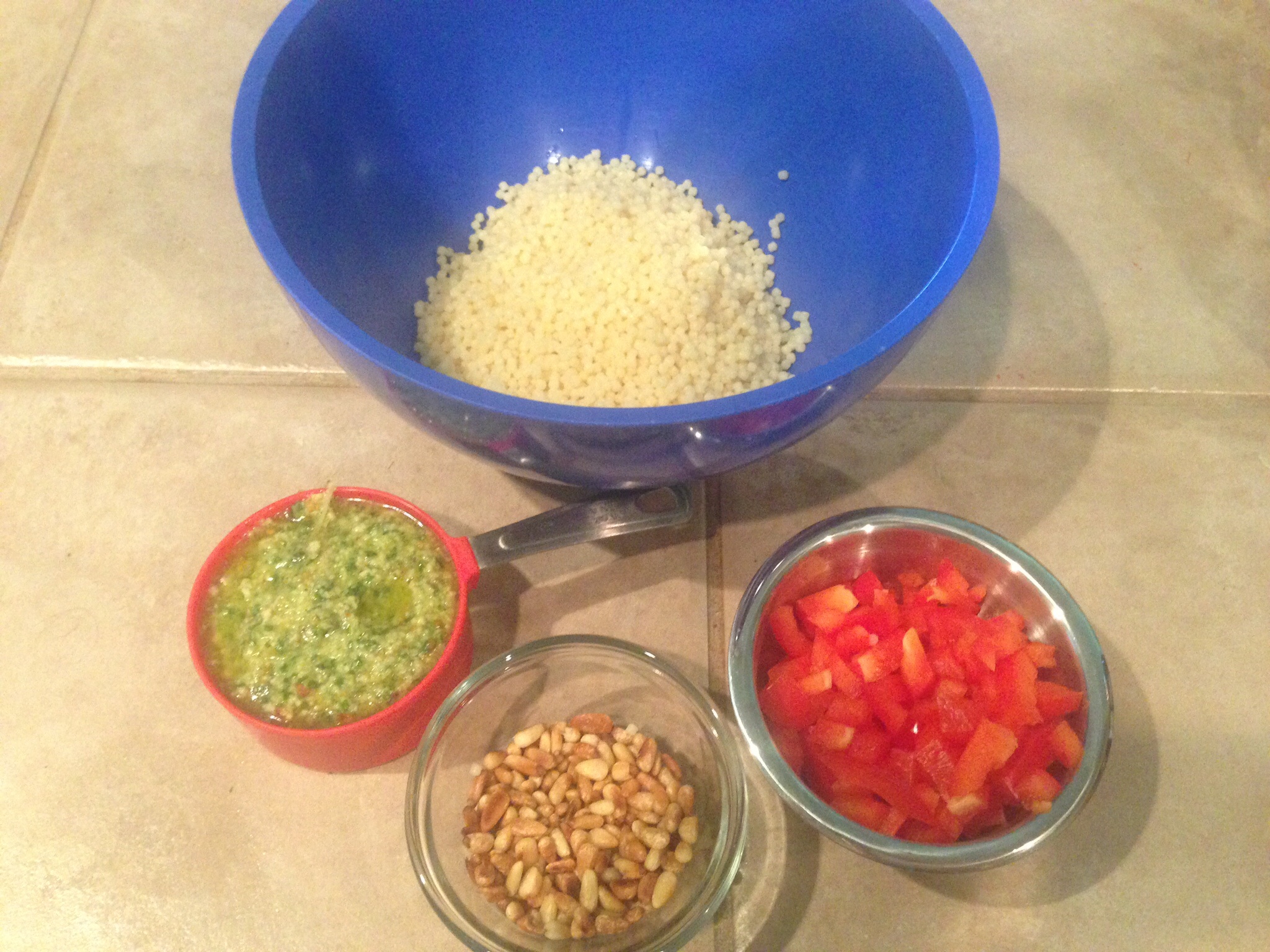 Thank you Mario Batali; this was all awesome! Three courses: monk fish wrapped in prosciutto and grilled on CI skillet; shaved zucchini and squash dipped in vinaigrette and grilled, served with fresh ricotta, mint, and shaved Serrano peppers; acini di pepe with homemade pesto fregola, toasted pine nuts and fresh red peppers. The pictures, while not award winning, tell the rest.