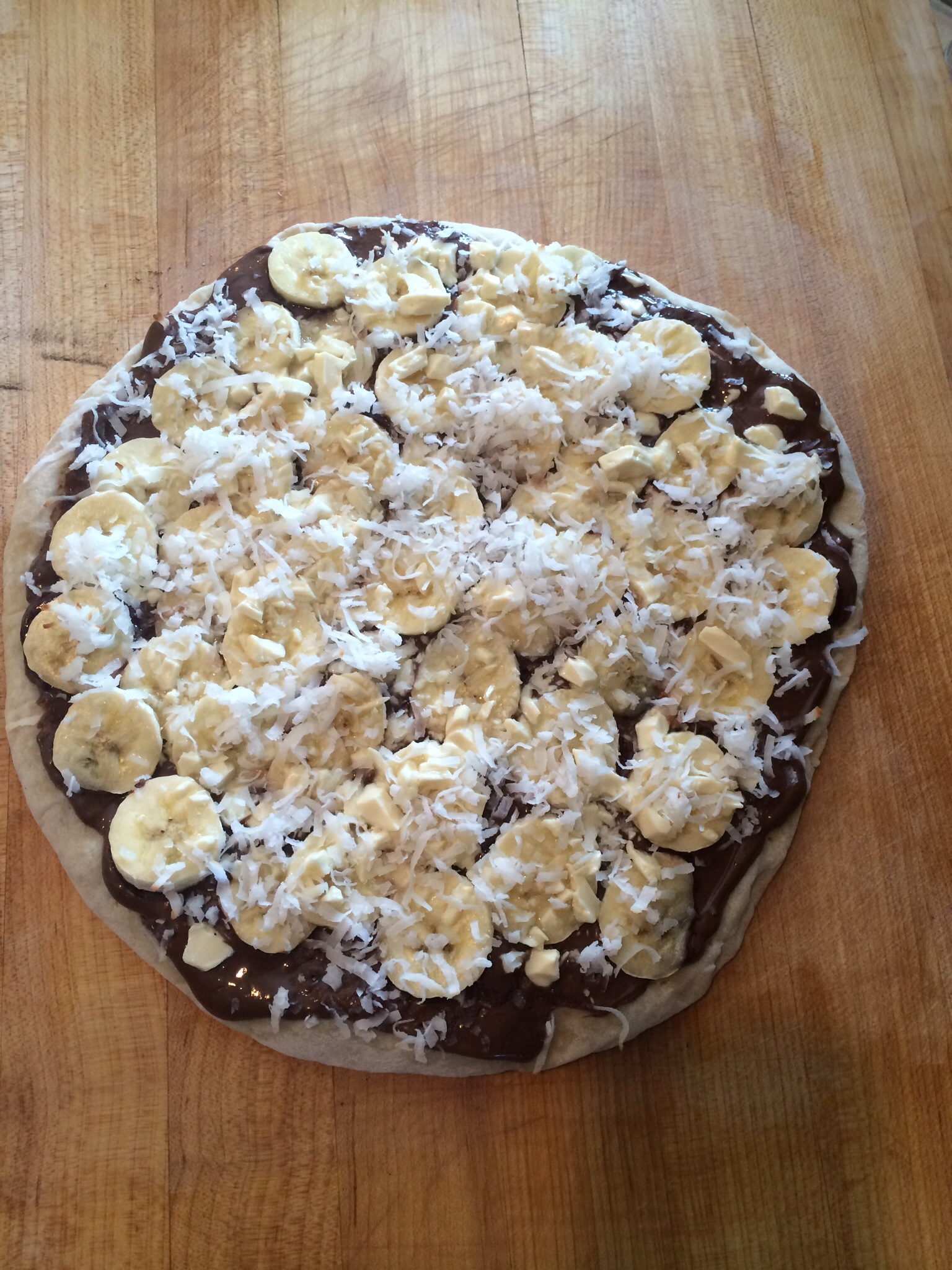 Thanks for posting, great idea. I do this with pizza and make a dessert pizza which the kids love. This one was Nutella, banana, white chocolate & coconut.Mechanicsburg, PA
