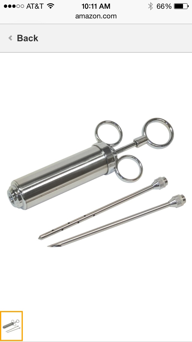 it looks to be the same manuf as the one posted by SGH, seems like they make the same injector under many different labels, i have the same from cabellas. it has a big needle that some like and some hate, i like minetulocay said:Thanks SGH. Anyone ever try one of these: http://www.amazon.com/Cuisavours-Stainless-Seasoning-Risk-Free-Guarantee/dp/B00FD9LSP4/ref=sr_1_5?s=home-garden&ie=UTF8&qid=1400166256&sr=1-5&keywords=meat+injector