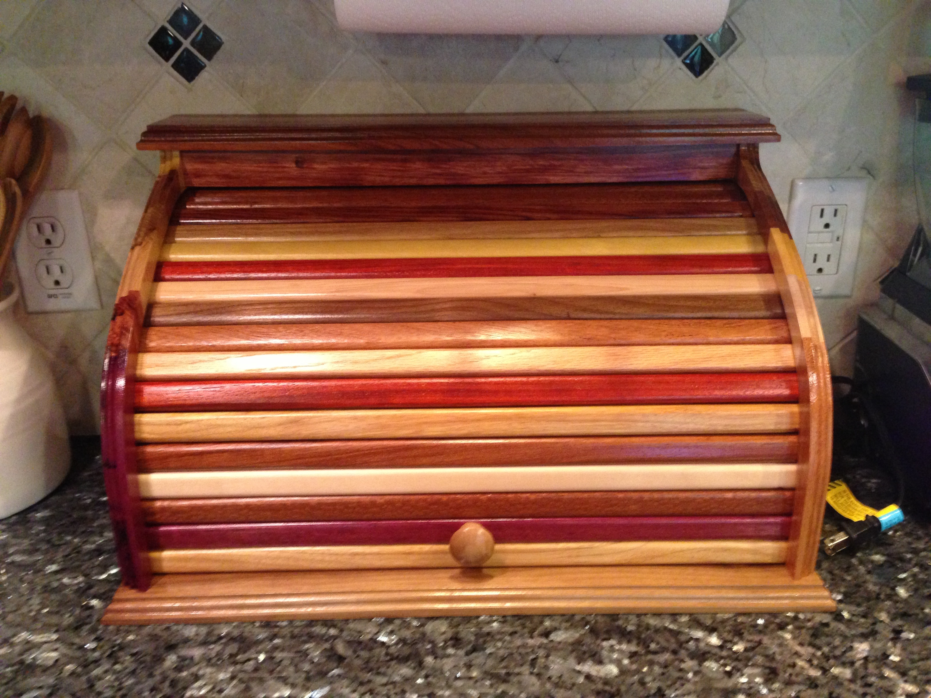 Had my neighbor make my wife a breadbox for mother's day and then I couldn't help but buy myself a cutting board. The breadbox is made from every type of wood he had.