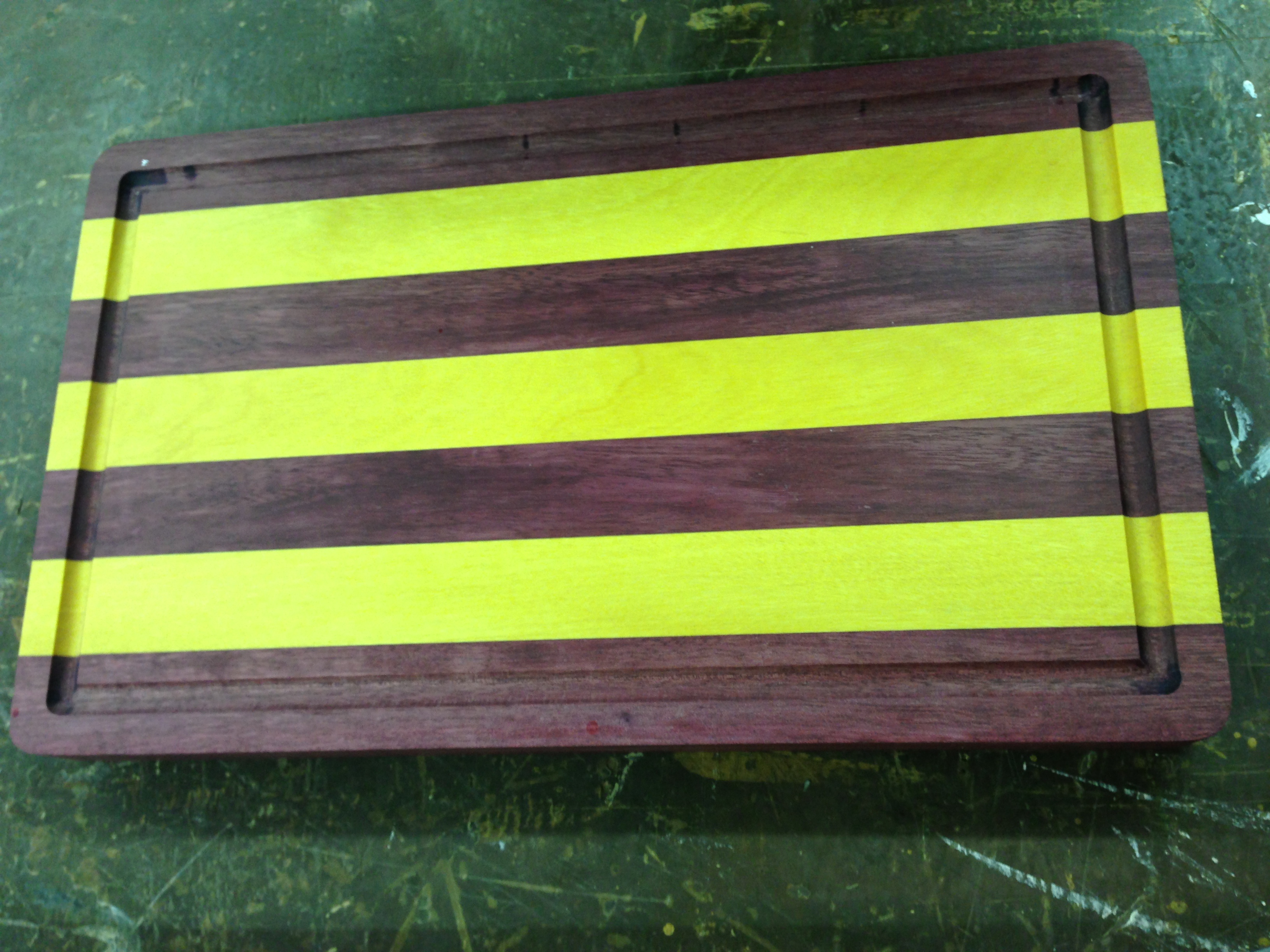 Heres a few more he made to sell. This guy does a great job. Wish I could do something so creative. And all the woods are their natural colors. The LSU board is south american yellowheart and african padauk.