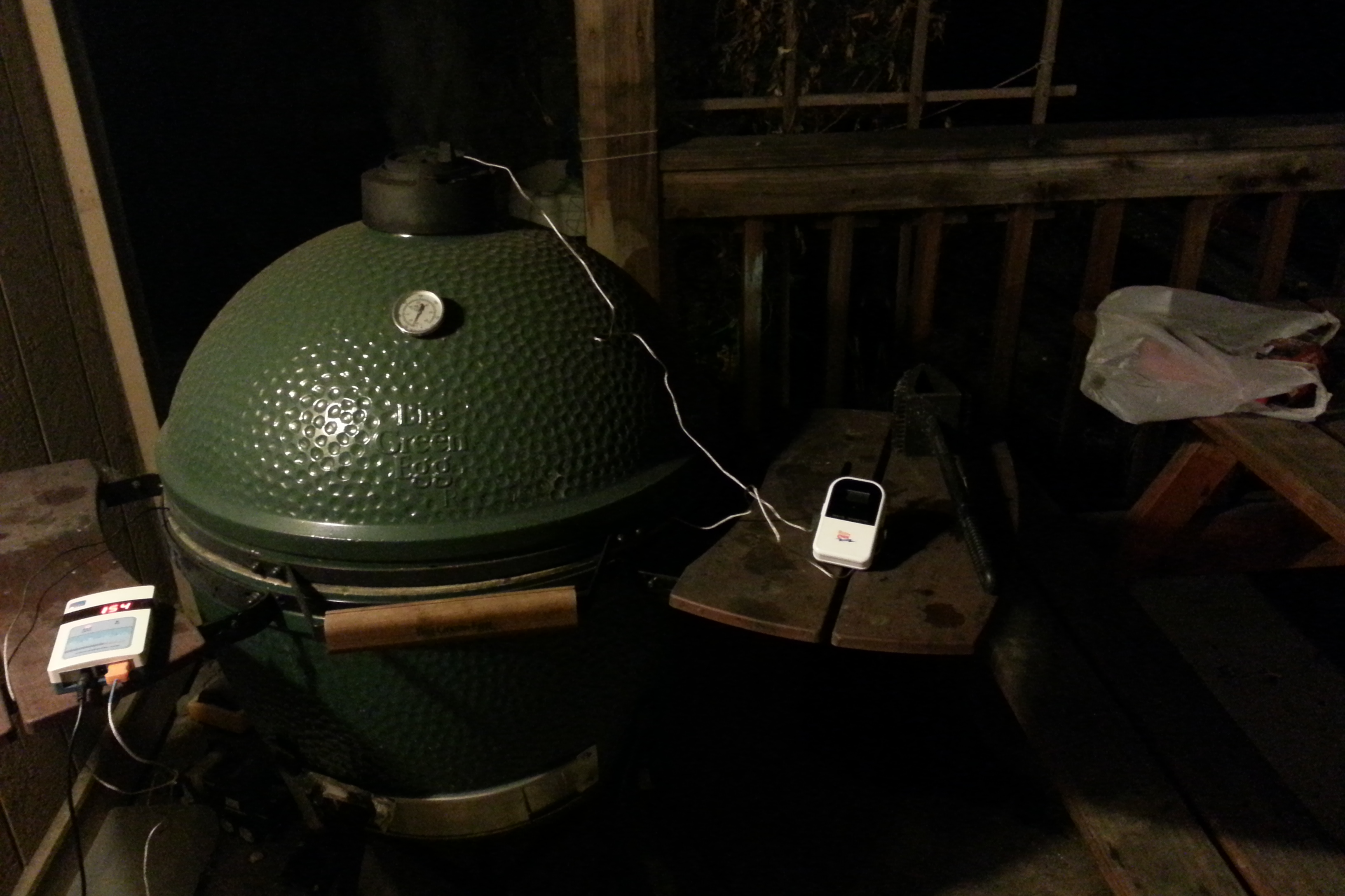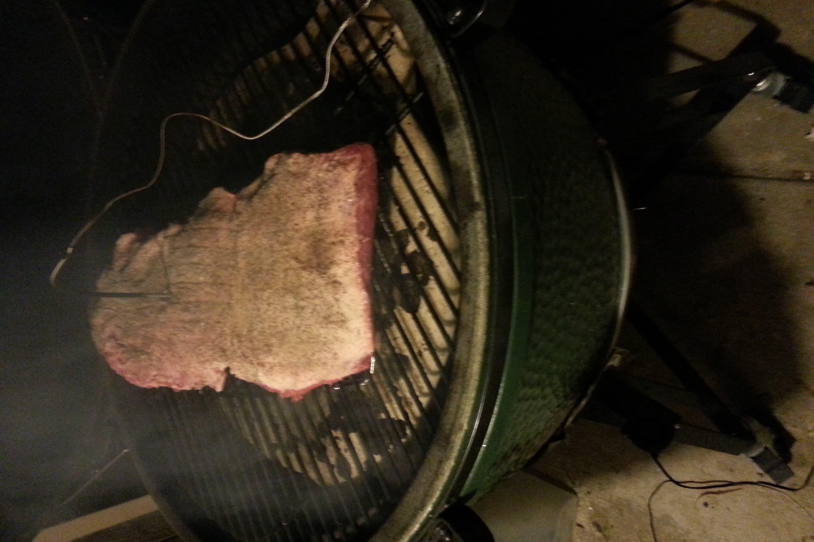 I got home from work about 2130, trimmed it up, rubbed with S&P, lit the egg and put it on about 2300. I was waiting to turn on my Auber when my phone rang, ran to an emergency and came back at about 0030. I turned on my Auber and headed to bed.