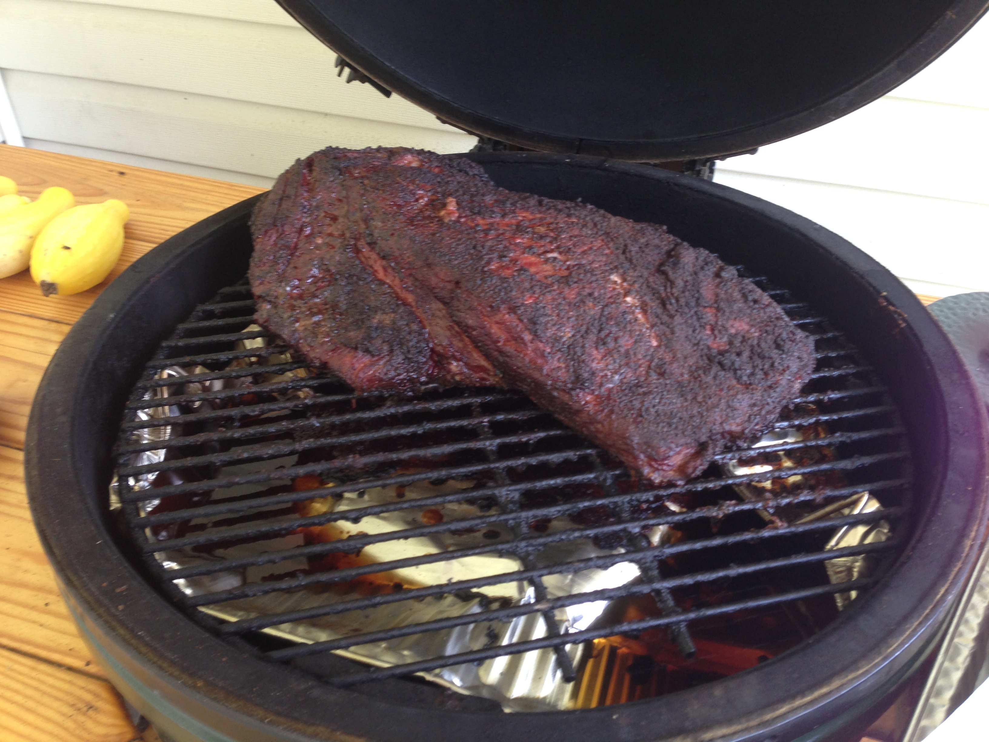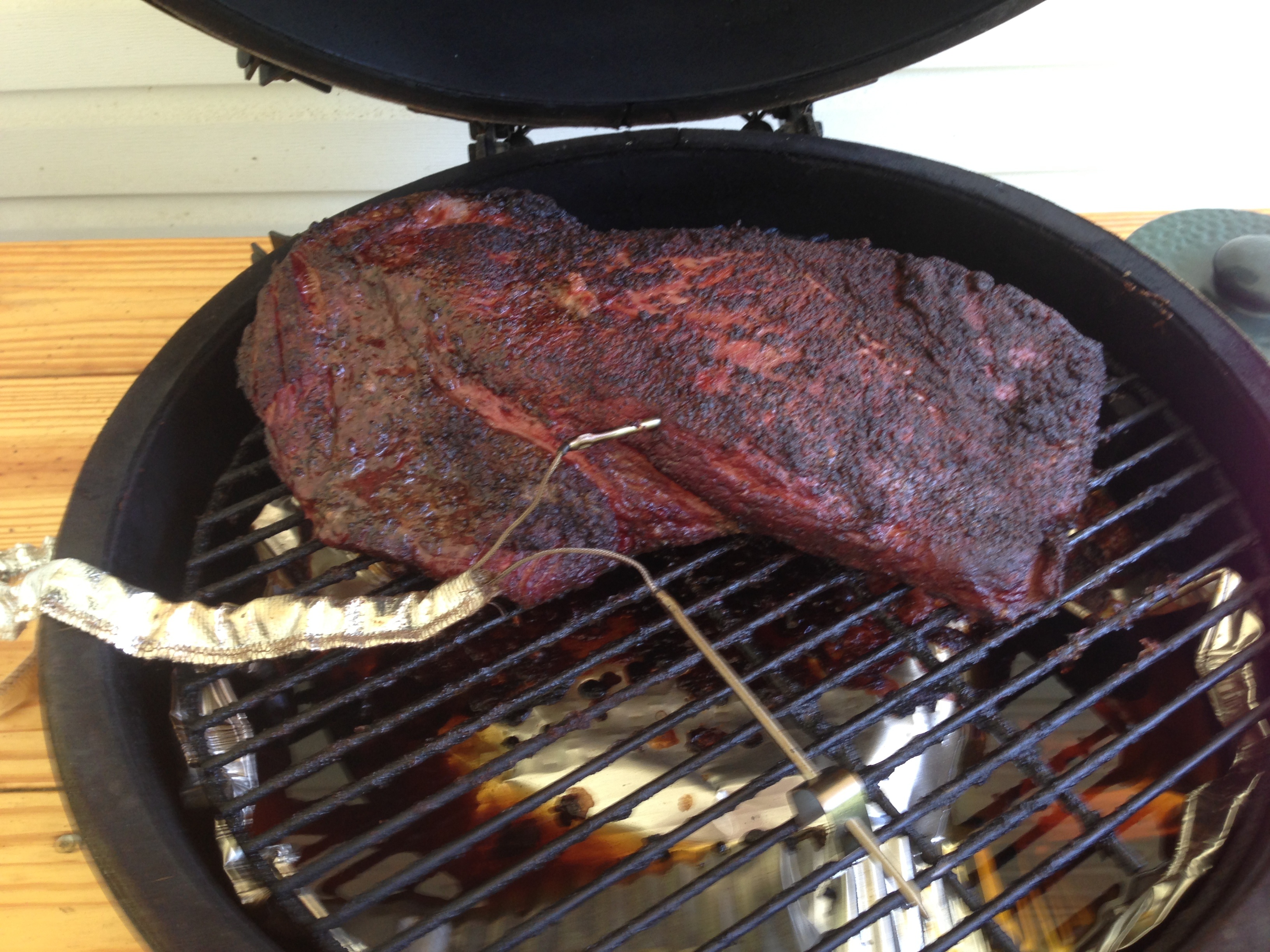 Well, rubbed a choice packer with salt pepper and a little fiesta brisket rub. Wrapped in saran wrap and put in frig and had egg filled with OO and cherry chunks dispersed. Got up this am, lit electric lighter waited 7 minutes and fire is officially started. Settled in at 275 and thru on brisket. Stalled out during a run to conway and got back and still stalled at 162. Few more hours and past the stall. Started probing at 190 and it was smooth at 194. Pulled, foiled, cooler. After 2 hours, wife almost home from work and went to slicing. Made a mess of the point but still cubed it and back on egg. All in all, my best brisket. Im very happy. Also started a new canadian bacon tonite. Two weeks and salty goodness awaits. Thanks for all the help from the forum. I call this one a success.