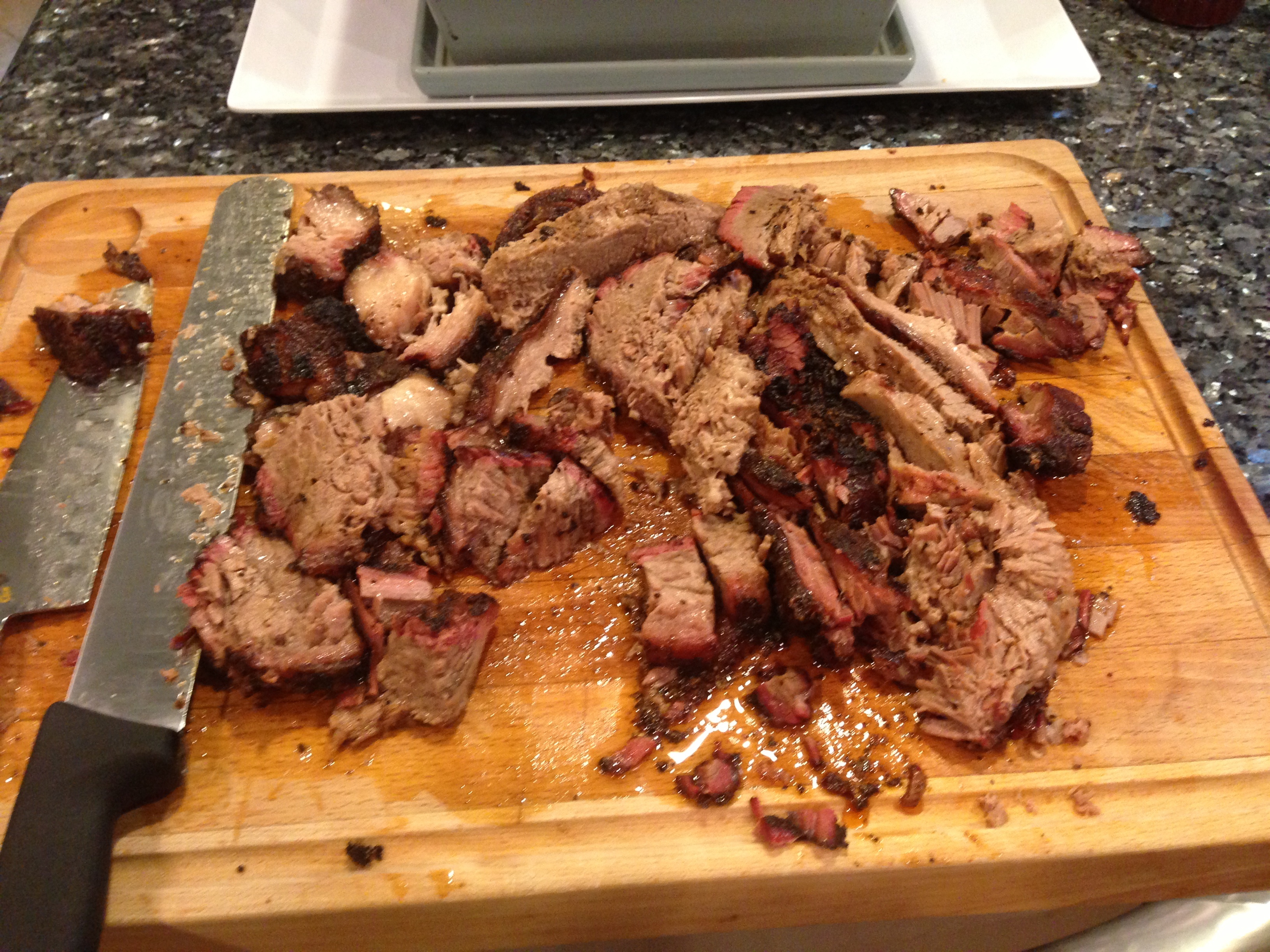 Can I come over for some of those burnt ends?   That looks excellent.  Beautiful smoke ring too.