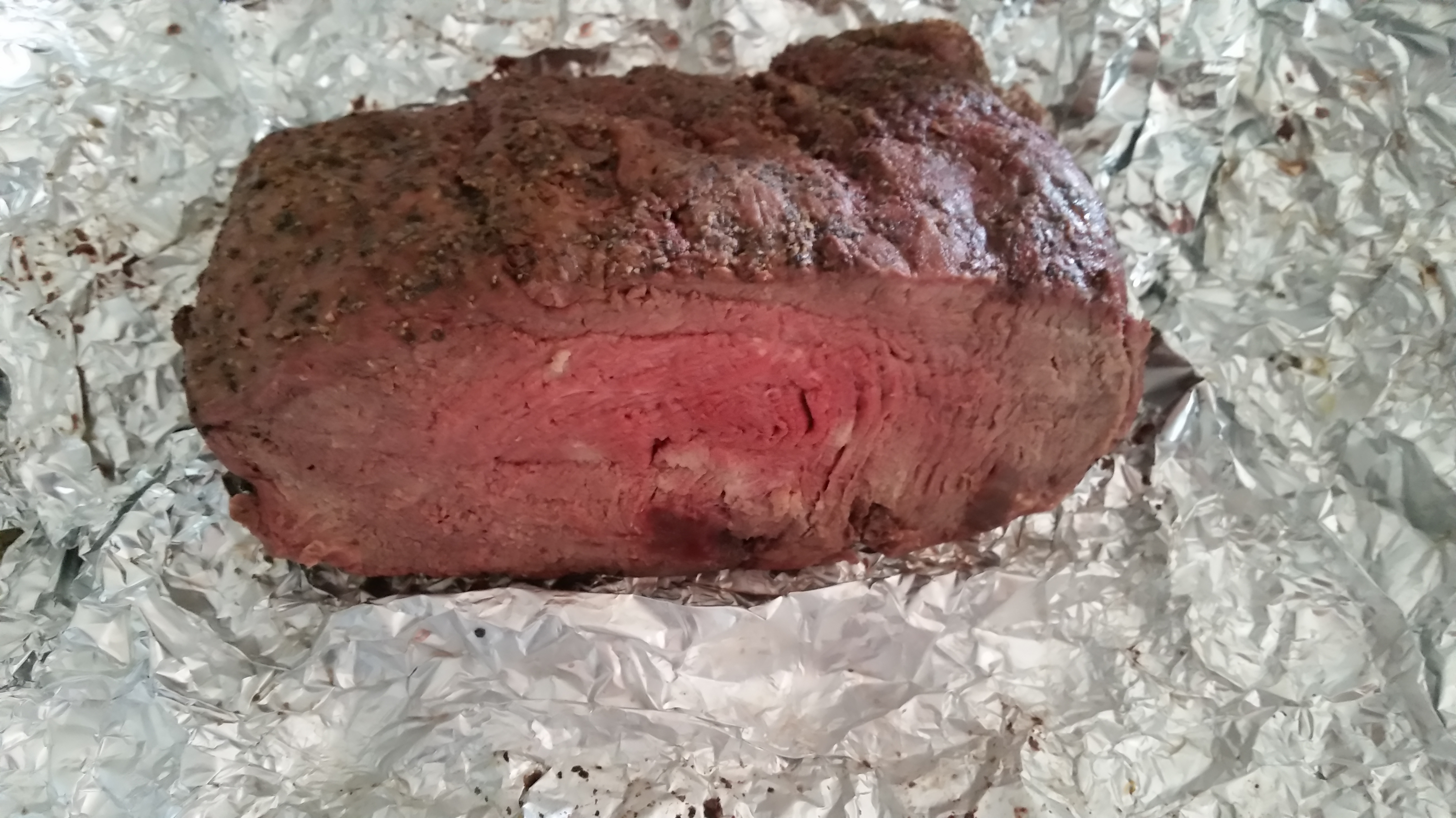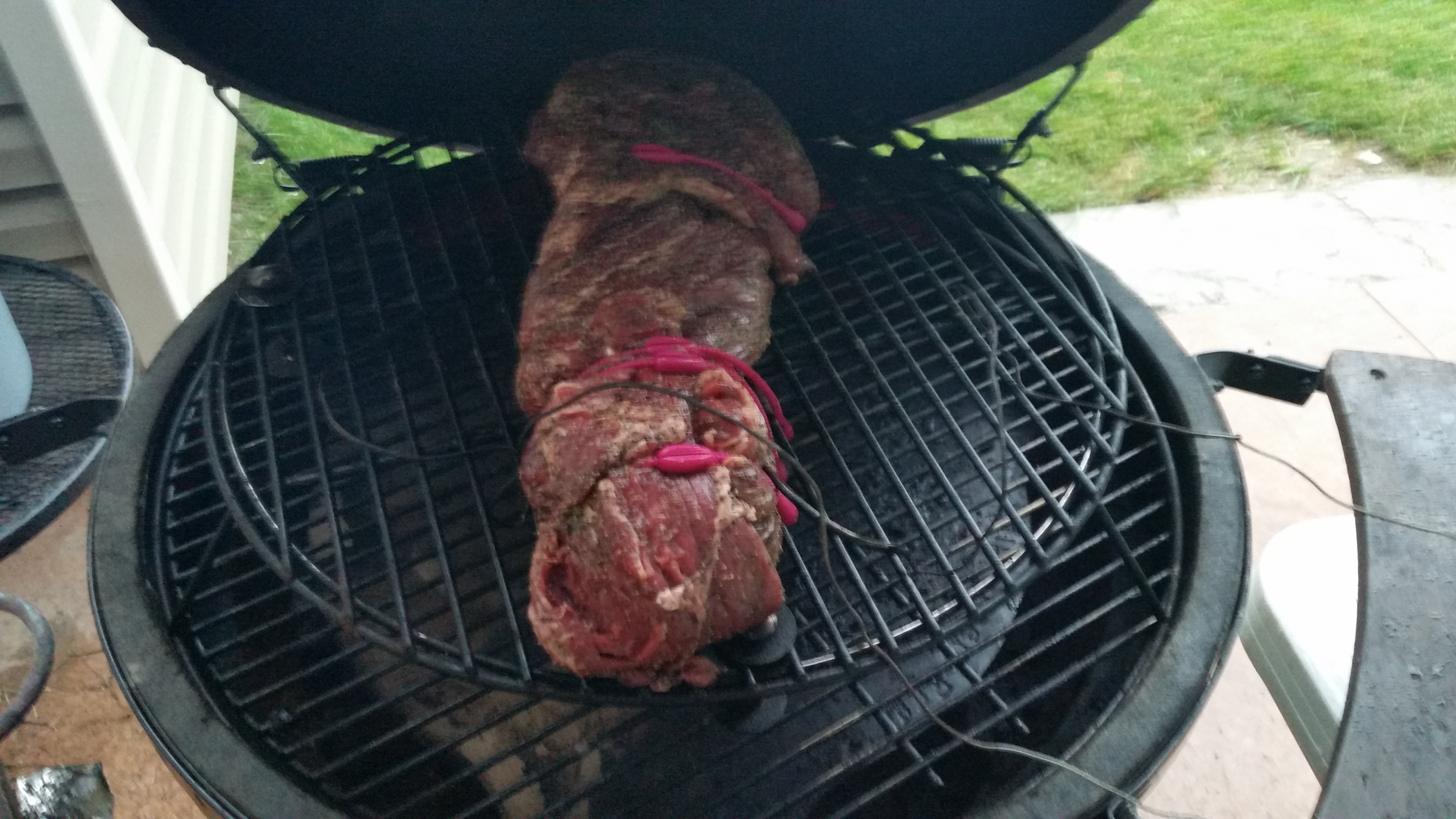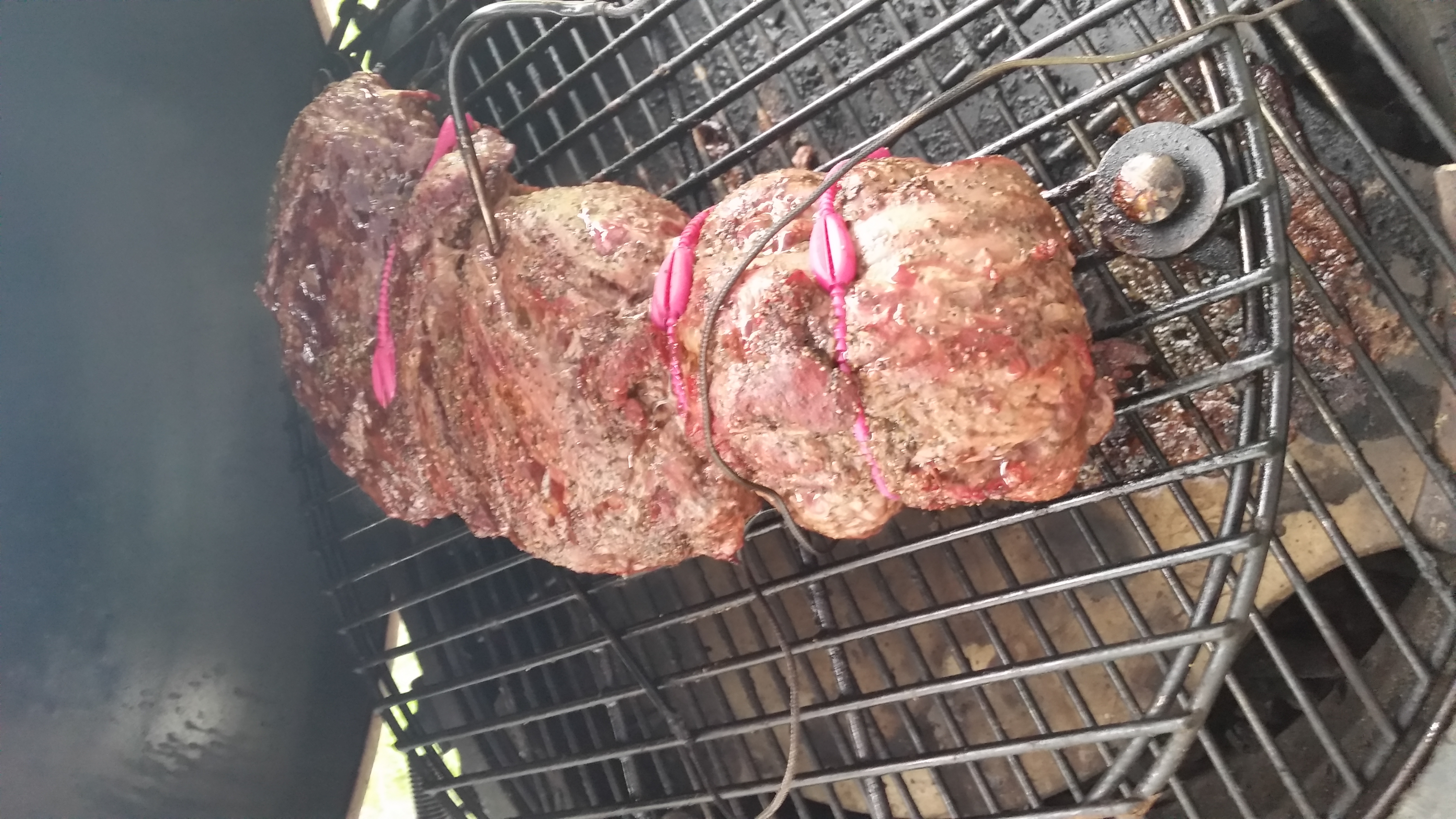This is the best thing I have cooked on the Egg. It came out awesome. Everyone loved it. I took photos while cutting, but they didn't come out. Here are some when I took it off and what is left of an 8 pound beef tenderloin. I cooked it at 300 to 350 for 1.5 to 133°. I pulled it, covered in foil to let it rest and cooked veggies. There was a lot and they took 20 minutes to cook. I will be doing this again when I find it on sale.XL, WSM, Coleman Road Trip Gas GrillKansas City, Mo.