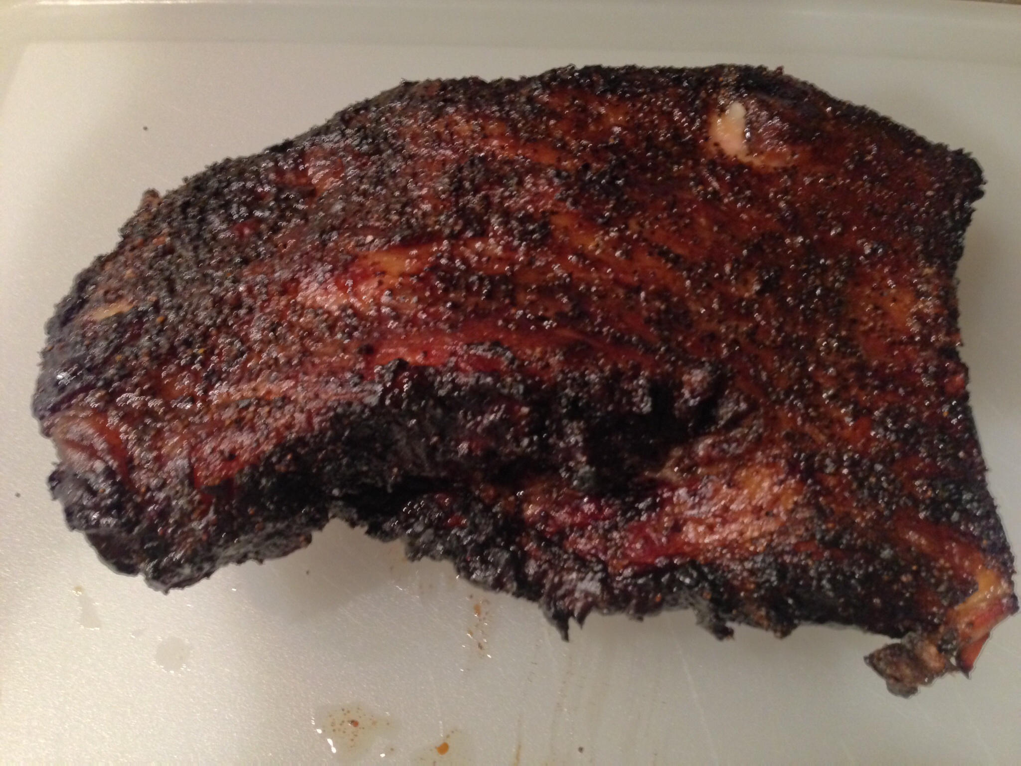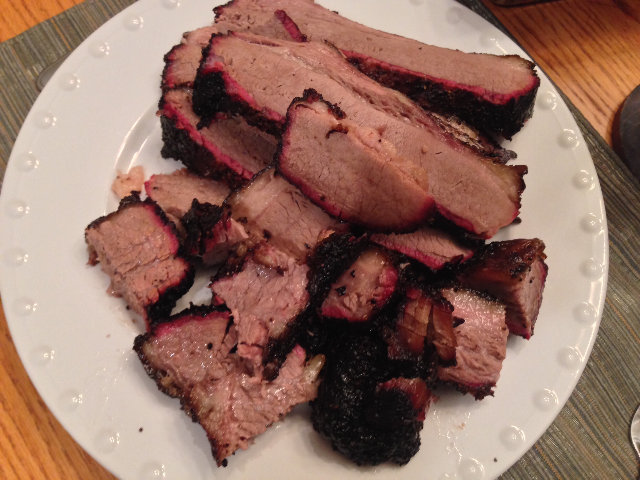 The bark was mushier, I think from the foil. The flat was not as tender as I would have liked and I was having trouble getting 1/4 slices with my serrated knife and electric knife. (time to invest in a good knife).