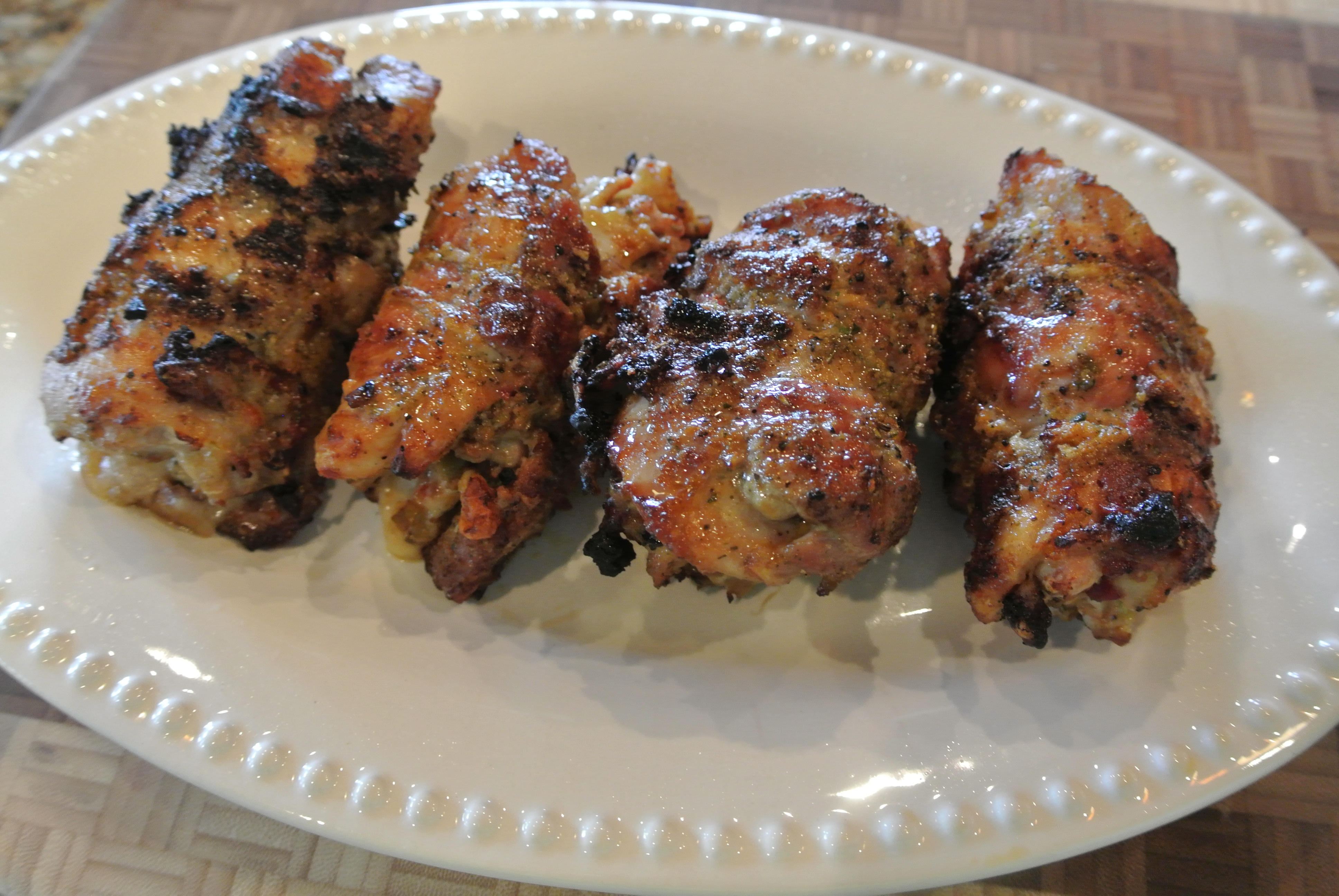 Tried something different with boneless skinless chicken thighs. Pounded them flat as I could between two pieces of plastic wrap. Then made a tapenade of chopped mixed Greek olives, roasted red peppers, garlic, and olive oil. Sprinkled the thigh with Montreal blend, spread on the tapenade along with some julienne cut sun dried tomatoes, and a thin cut piece of Sargento aged swiss cheese. Rolled up the thighs and tied them together with butchers twine. Grilled on the main grate at 375 until well marked, then moved them to the second tier to finish to an IT of 165 -170. I made a simple sauce of sun dried tomatoes, olive oil, white wine, italian herbs, and garlic in the blender. I simmered it on the second tier next to the grilled chicken thighs. Served with sliced avocados, red onion, sun burst tomatoes, feta cheese, Pistacio nuts, and balsamic vinaigrette. Came out tasting amazing. This is a keeper in our family collection of cooks.