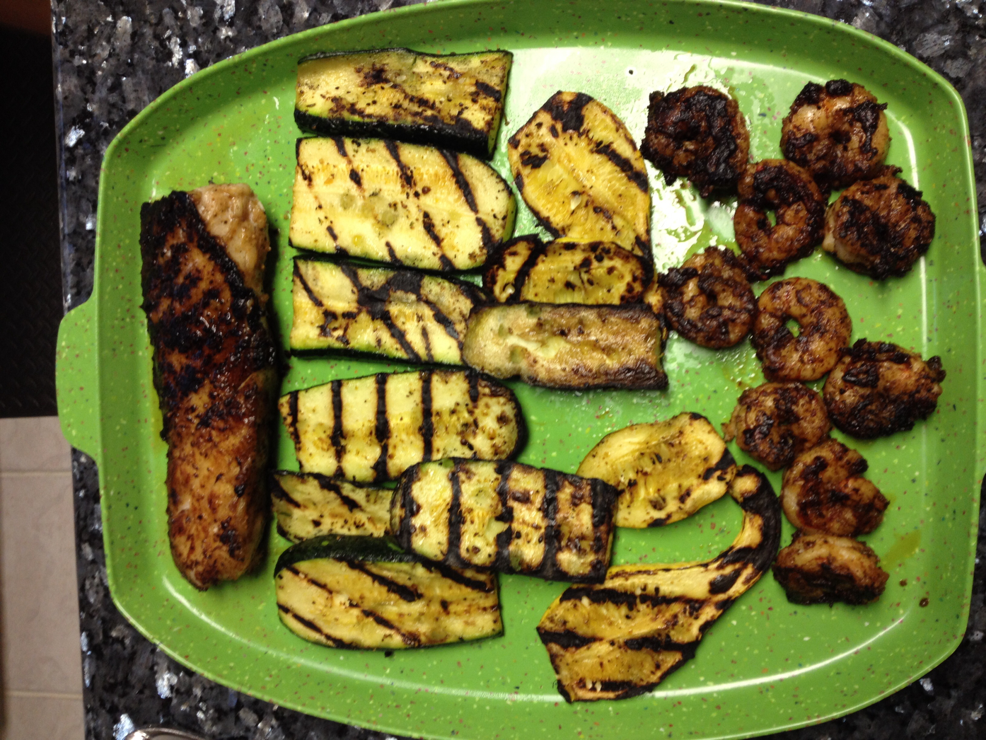 I used a cast iron pan on the grill to cook blacked grouper and royal reds shrimp. I used Fiesty Fish Rub and Swamp Venom with olive oil on the shrimp. I used Dizzy Pig Raging River Rub and olive oil on the grouper. I cooked the fish at 500 for 3 minutes one side and two minutes the other using butter on the pan. The shrimp was cooked for 2 minutes and then 1 minute. After that time I removed the pan to keep it hot and finish cooking the second side. While the fish finished I cookd the zucchini and yellow squash for about 2 minutes a side directly on the grill. This was the first time I tried blackened fish and it will not be the last time. It turned out great.