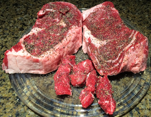 Came back to pick it up and he had been able to get 10 nicely trimmed ribeye's out of the primal cut. The best news of this was that they were re-weighed so what we expected to be $130 was actually $92. All the waste from the lip etc. we didn't have to pay for. The same steaks pre-cut and packaged for sale were almost $2 more per pound.