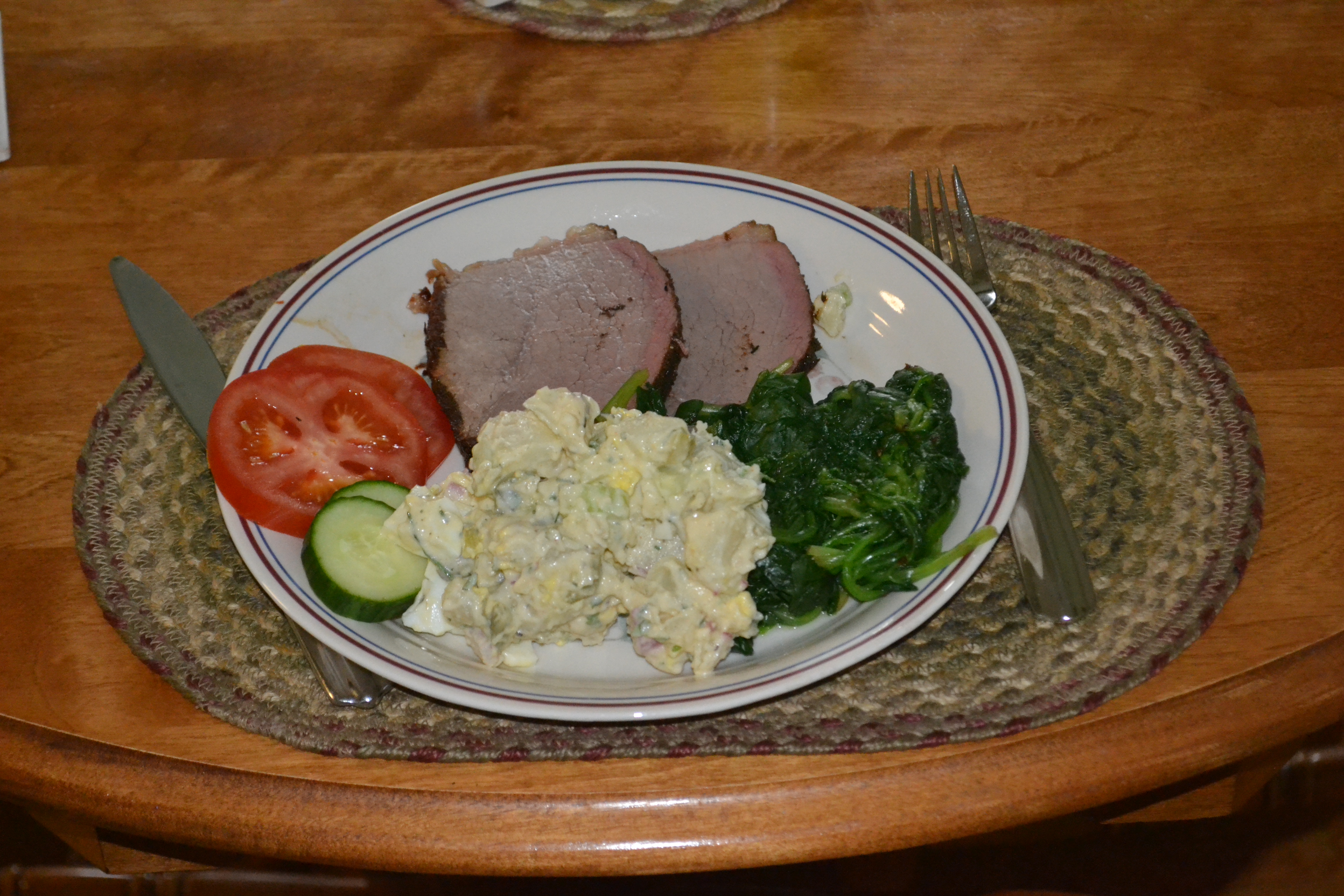let it cooked for 2 hours should have taken it off at 1.5 hours after 2 hours took it off and let it rest for 15 -20 minutes While my roast was cooking i made some potatoe sald