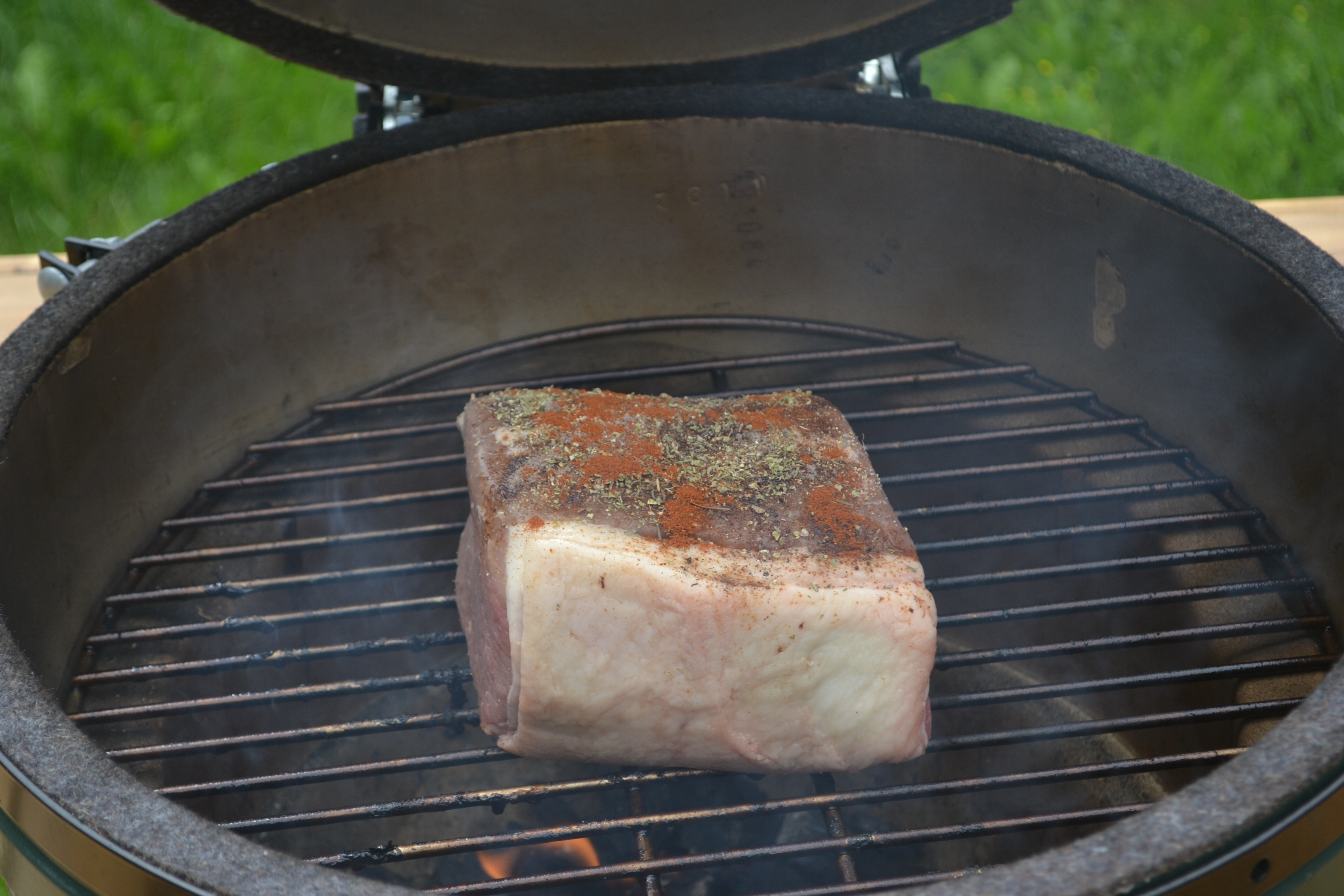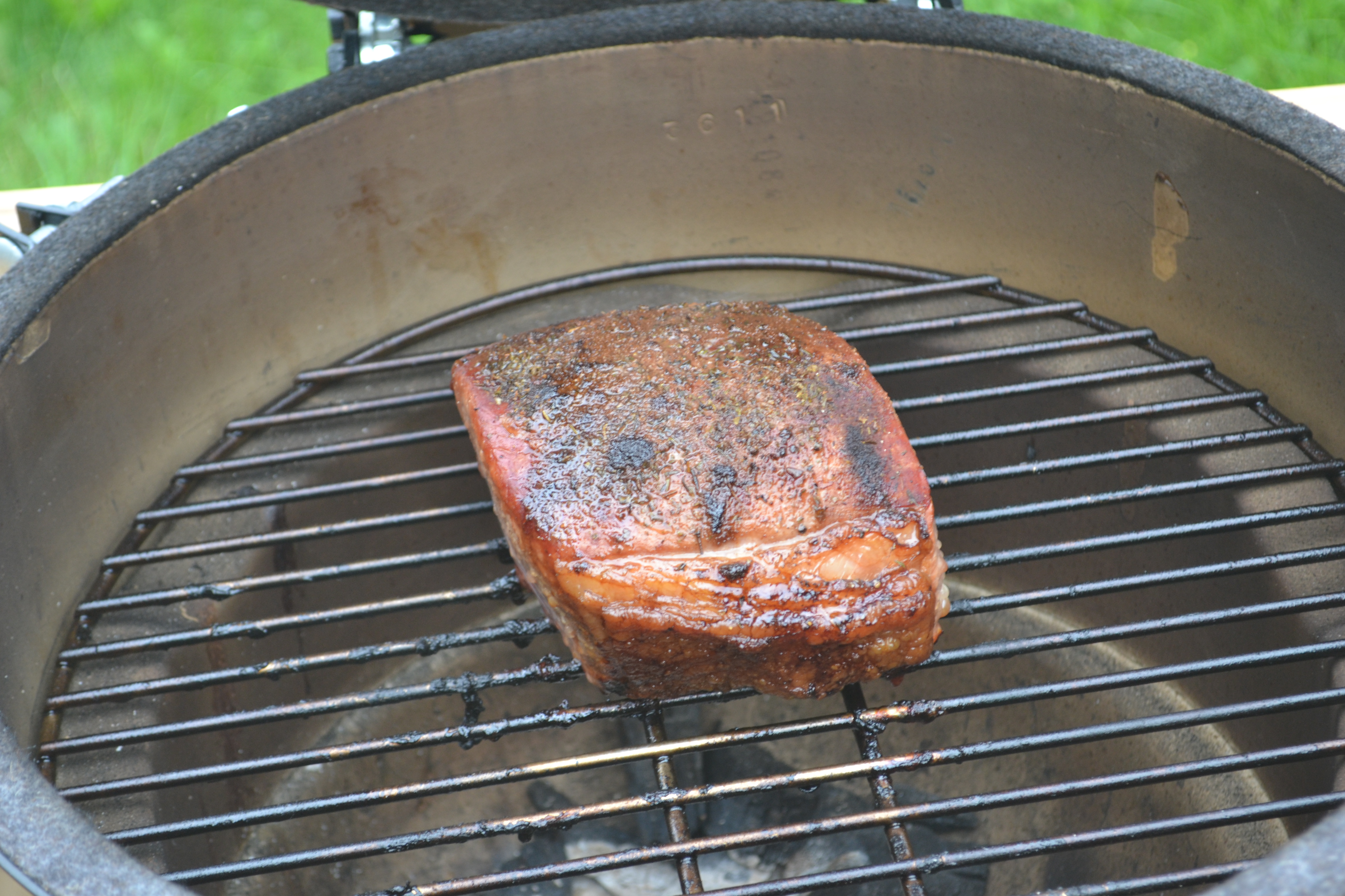 My first try at cooking Top sirloin roast I set my bge at 350 direct heat seasoned the roast with (granulated garlic thyme fresh cracked pepper and beef base)