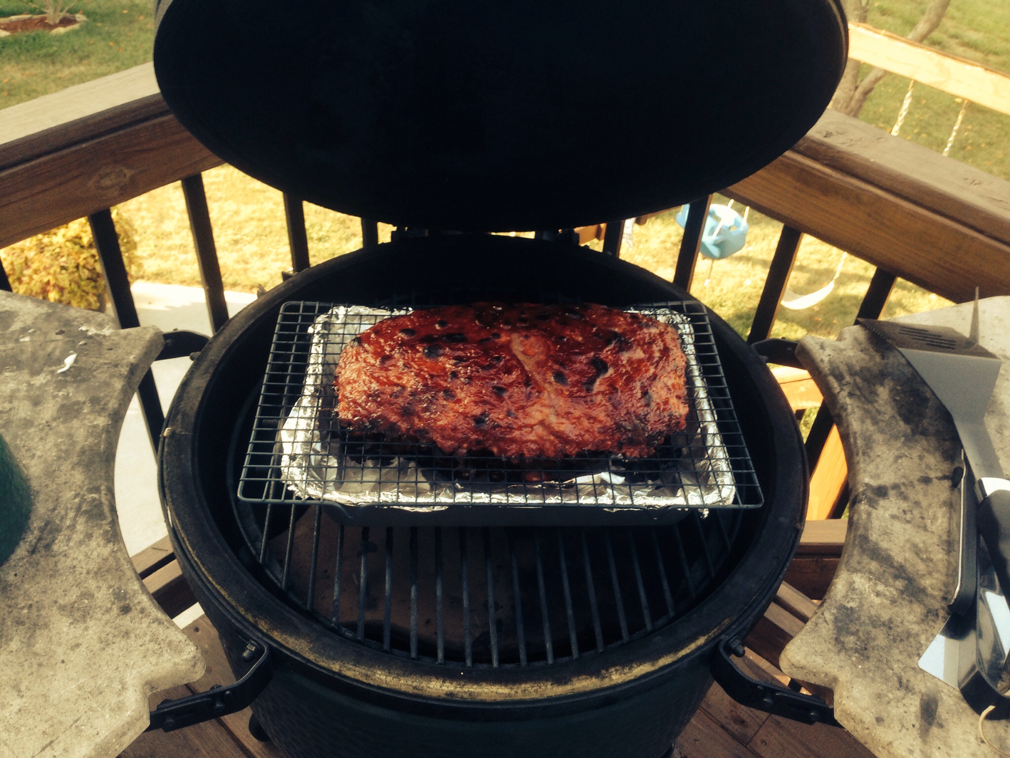 Took my oven recipe meat loaf and cooked it in the egg tonight, not sure I will ever put it back in the oven. I ground a pound of pork loin and then used 2 pounds of 90/10 ground beef, then used 6 pieces of bread, 2 eggs, and a half a cup of milk, and a dash of poultry seasoning and some salt and pepper. Mixed it all and formed it on a cooling rack and sat on top of a pan indirect legs up at 400 for about 90 minutes until if reached 160. The last 30 minutes I put the mixture of ketchup, brown sugar, and Worcestershire on top and let it cook in. Made extra sauce to eat on top, turned out great! Forgot to get a picture of it plated as I was hungry and it looked awesome.
