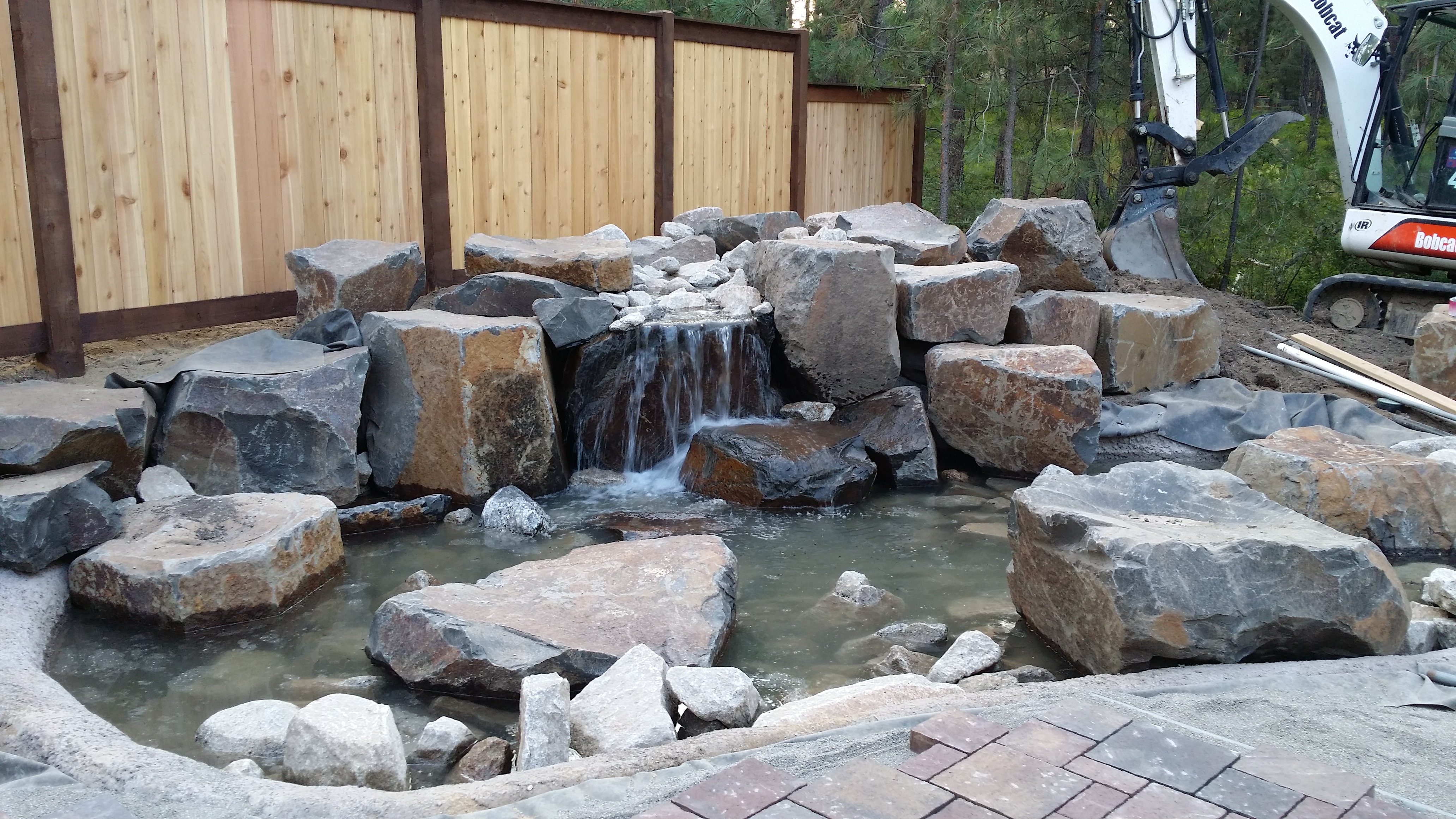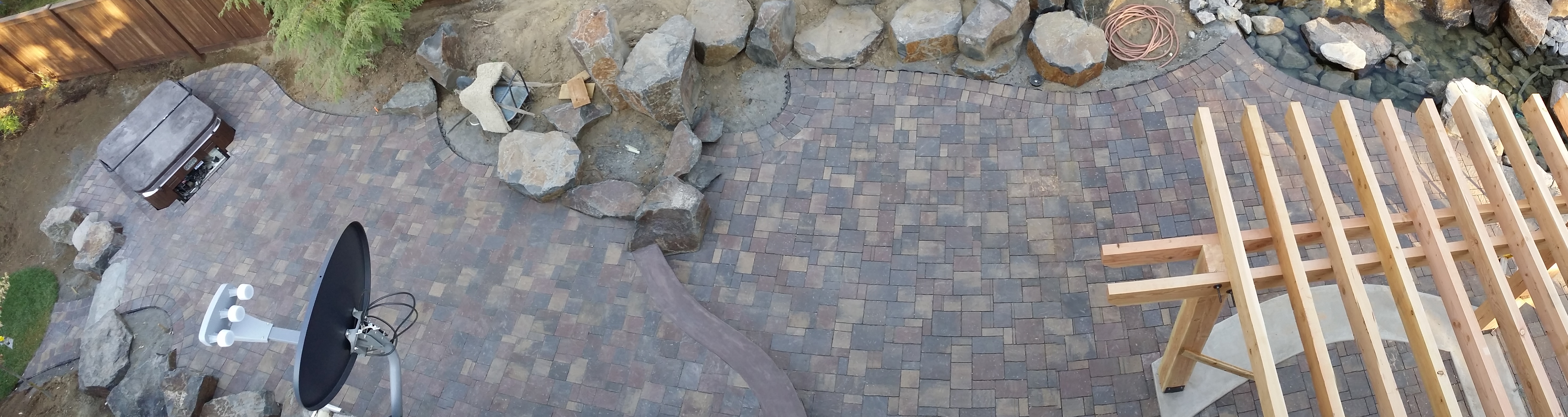 Ok, to respond to some of the comments. It is an XL BGE - we do A LOT of entertaining so I need it. There will also be a full gas grill next to it.I have over an acre of lawn around the house so didn't need more here - there is also lawn on each end for seating and just relaxing. It is just not visible from the picture and is actually not even there yet.Yes, there are a lot of rocks, but it builds the retaining wall and adds a lot of texture to the yard. Once planted around it will soften it up a lot and really make it nice.Yes, it is nice being me - I have worked very hard to get to this point of my life to just enjoy it.It is hard to see it all, but here is a picture taken from the roof to try to give an overview of the project.AND Lastly - if any of you are ever in Spokane, Washington - just let me know and you will be welcome for dinner.