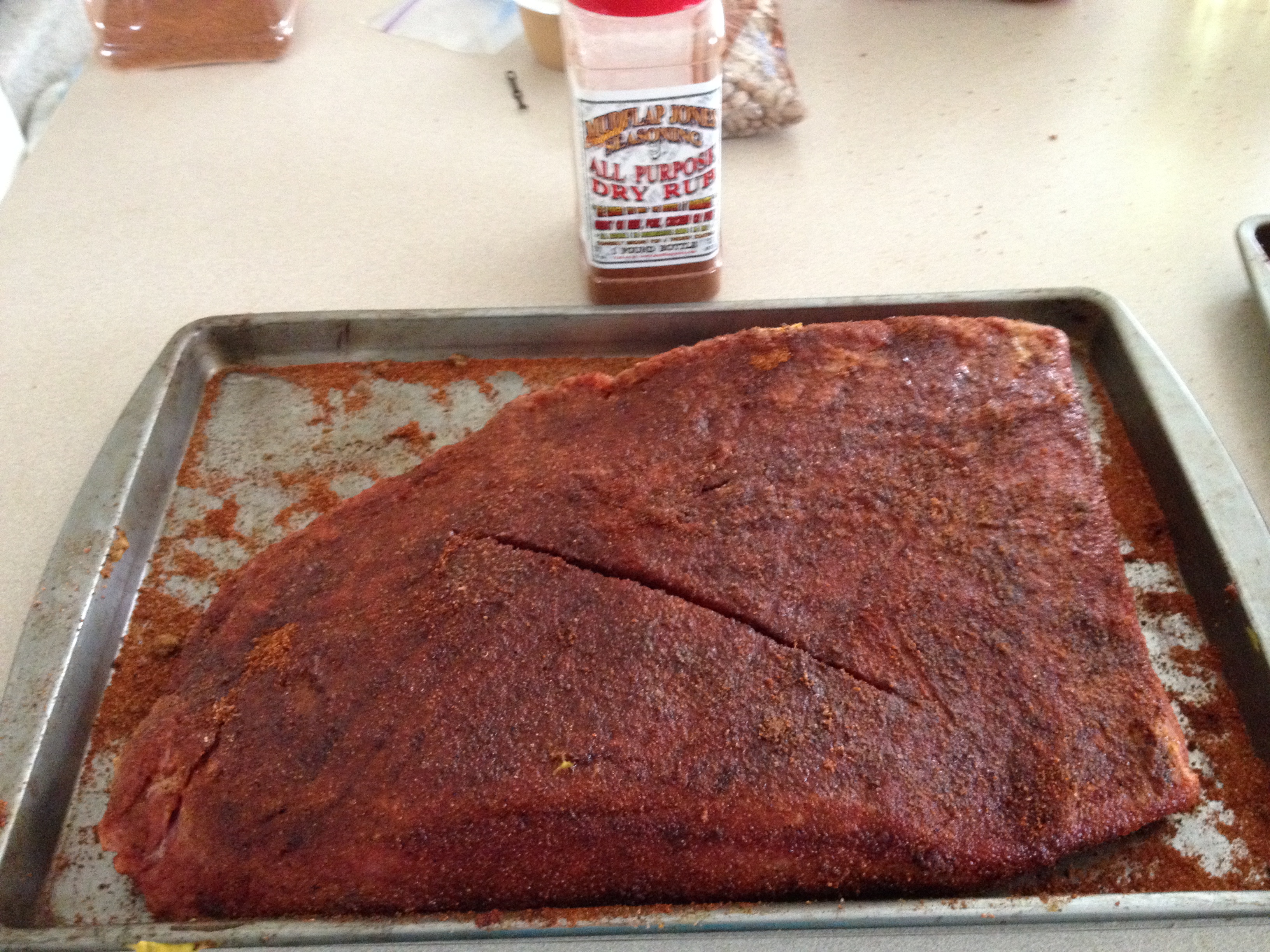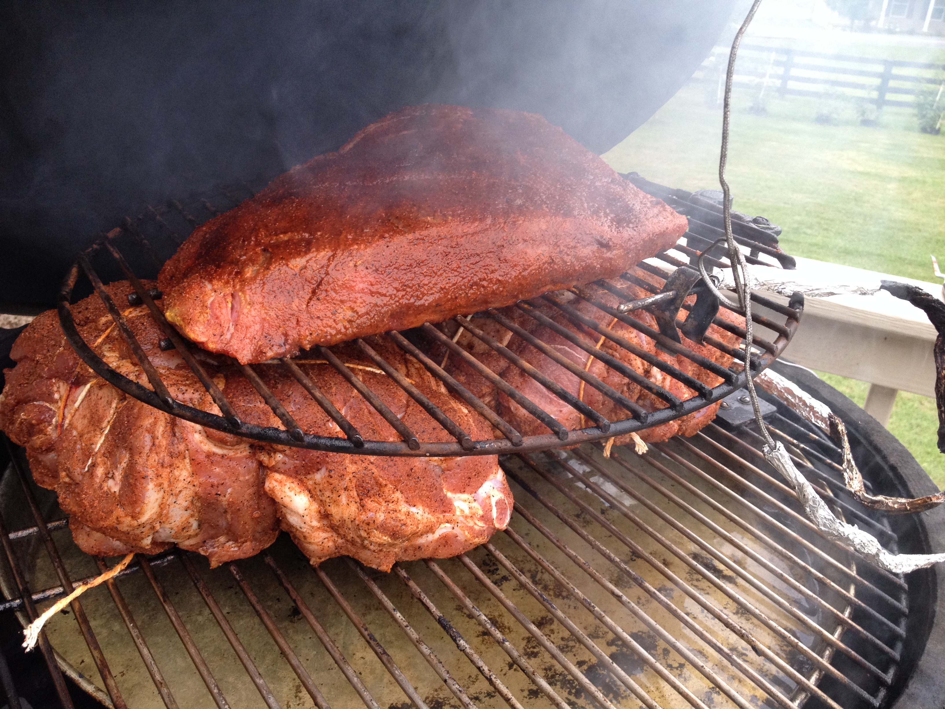 Looking good. Let us know how slicing the butt for additional rub work out.