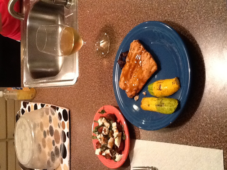 Great meal. Grilled salmon. Used salt lick BBQ sauce. Threw some pecan chunks in. Had grilled squash and caprese salad. Great meal