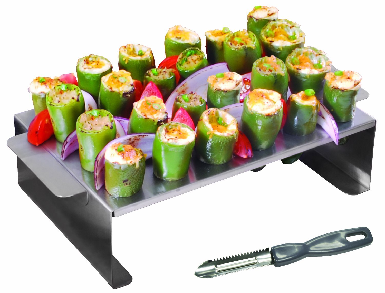 I mis-read this and was thinking the rack for the jalapenos was adjustable.  That'd be nice, since on my existing freestanding rack (the kind posted by @photo egg above), some peppers are too big to fit and some holes are too big to hold the peppers.  How cool would it be if, say, the pepper rack had small/med/lg holes?  Or if the holes were engineered to expand and contract?  I can dream, right?