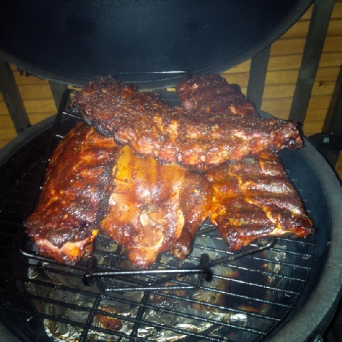 I believe what I'm going to do is rub overnight, then 350 dome for about 2 hours - all unfoiled. Sauce half for last 20 minutes, the other half dry. Wondering whether I should do that direct, indirect, or raised direct?