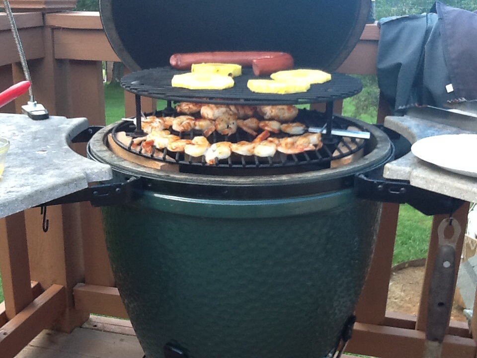 So I know most of you cook on multi-levels but I wanted to start slow and try it. On the bottom is chicken and shrimp, and on the top rack is sausage and pineapple , although an easy attempt I did enjoy cooking like this. I apologize for no plated pics we were late for my sons football practice and I forgot. Is there a way to do direct on bottom and indirect on top? Any and all suggestions are greatly appreciated.