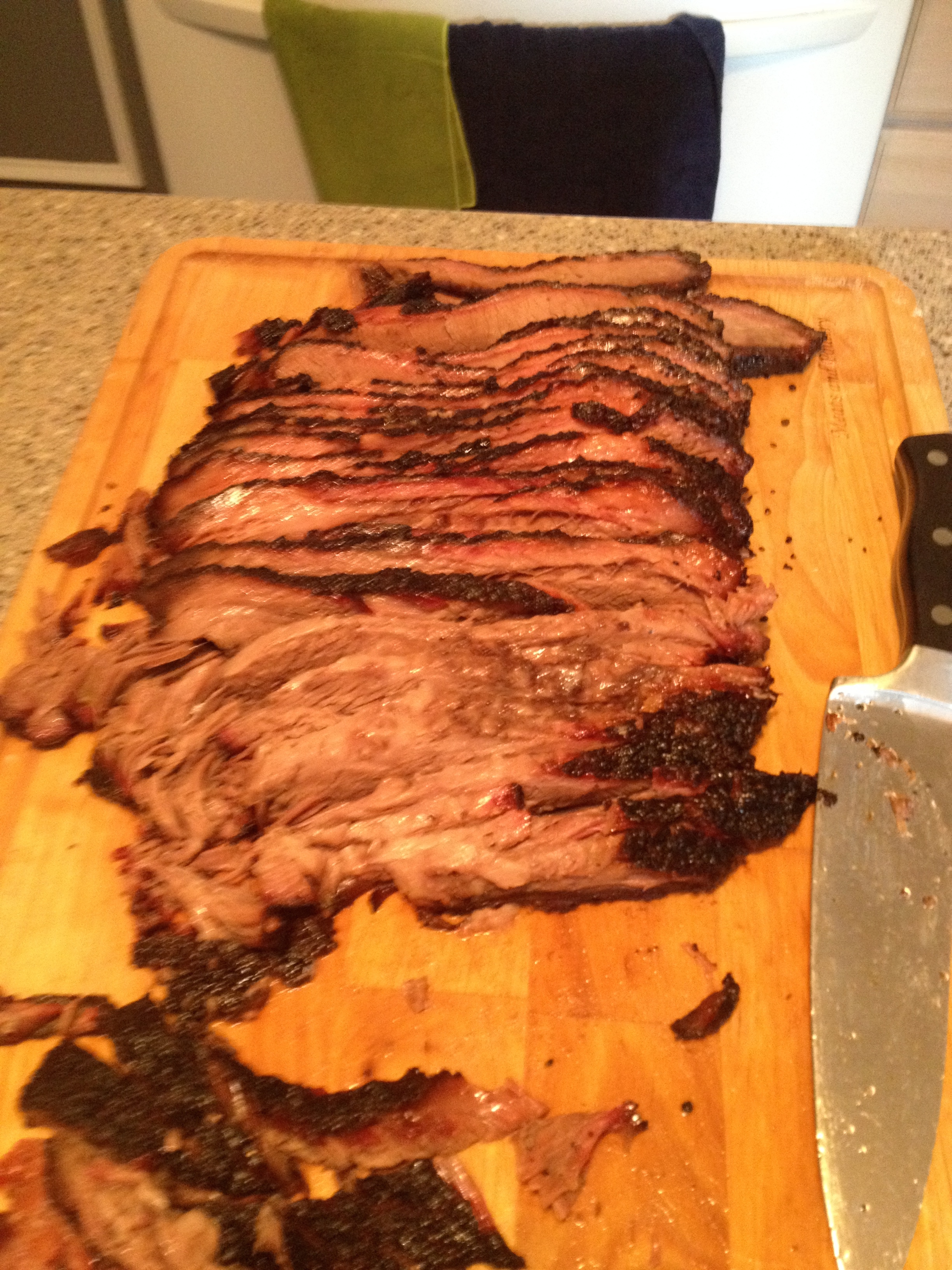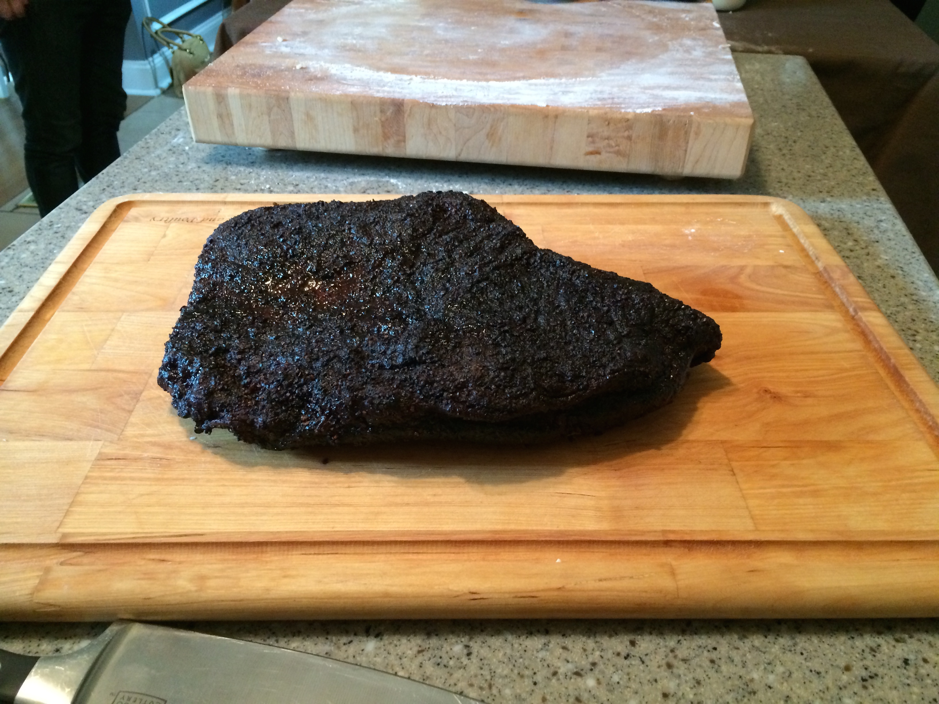 Did my first brisket for today. 8.5 lb flat, salt and black pepper rub for 24 hr then cooked at 250 for 10 hrs with 3 big chunks of hickory. Finished at 7 am so FTC until about 12 and had it ready for sandwiches for football at 1. Turned out great!