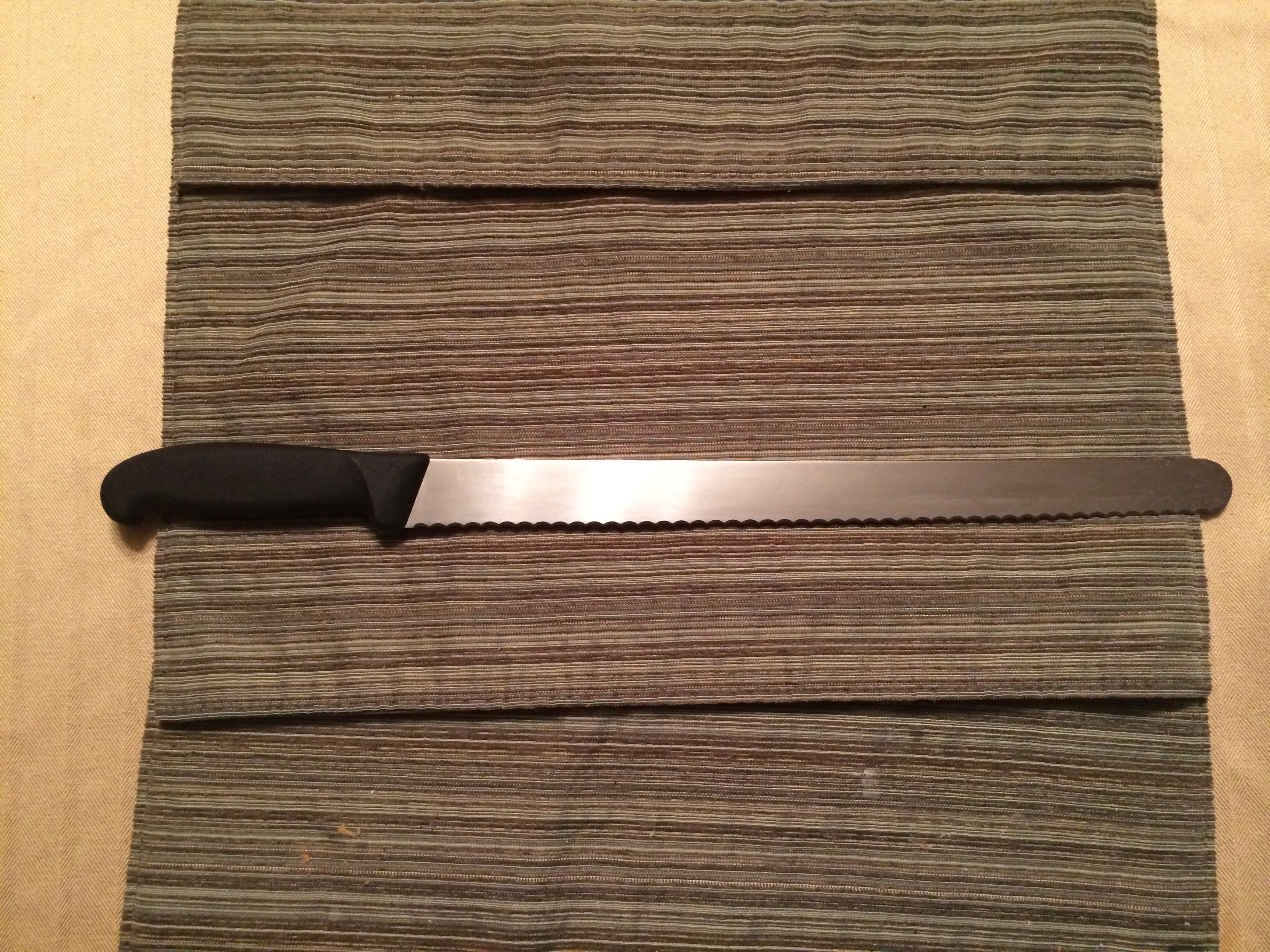 Brother Tex here is another very useful knife to have around. It's not a must but a excellent and handy knife nonetheless. This particular knife is only sold around the holidays. Why? I don't know brother Tex. Just how they do it. This is a true meat slicer, not a flimsy bread knife. What makes this knife unique is that it's a true meat slicer, again not a bread knife and has a 16" blade instead of the traditional 12 or 14 inch blade that all other meat slicers have. Is this a advantage? You bet your boots it is my friend.