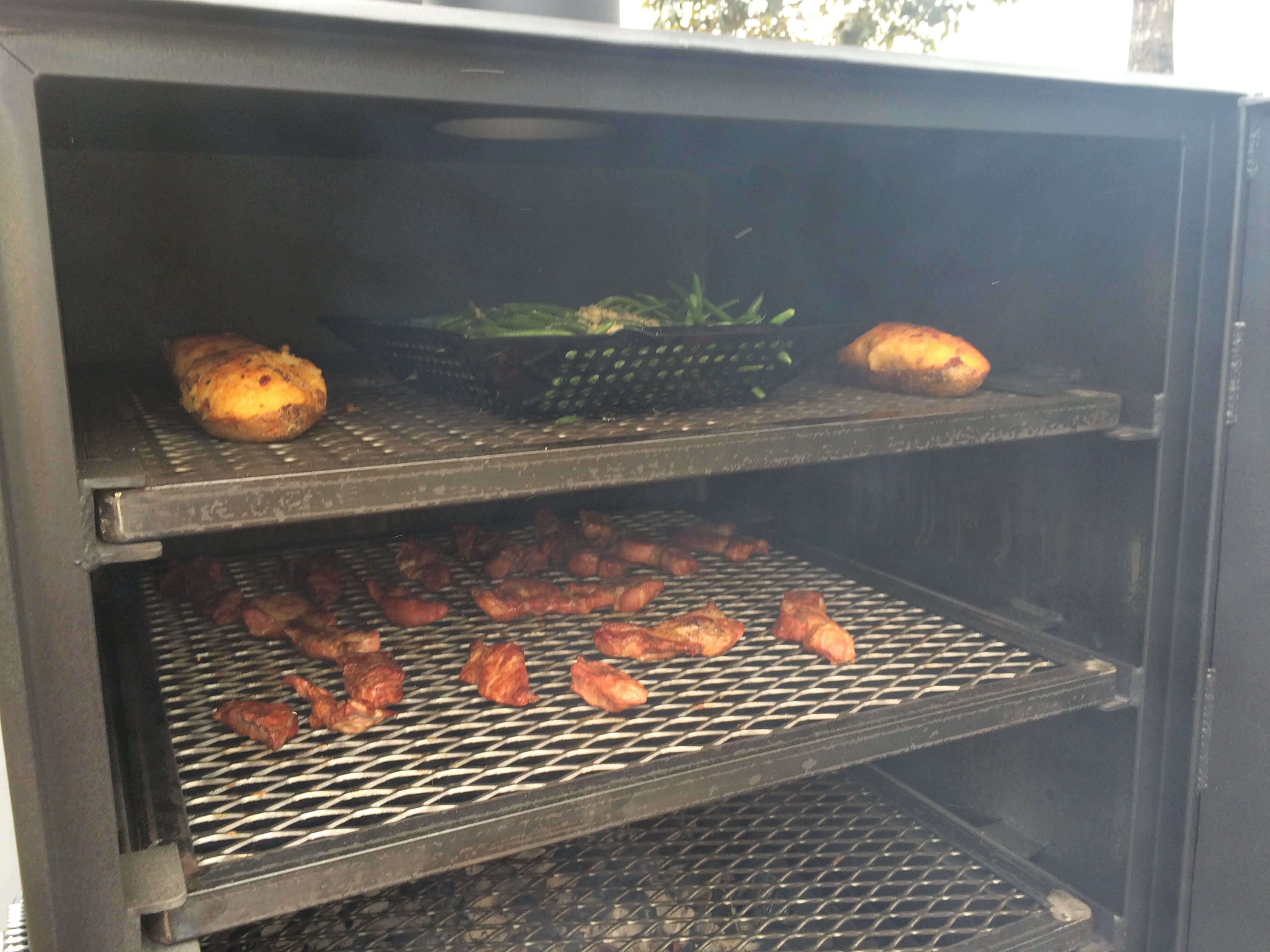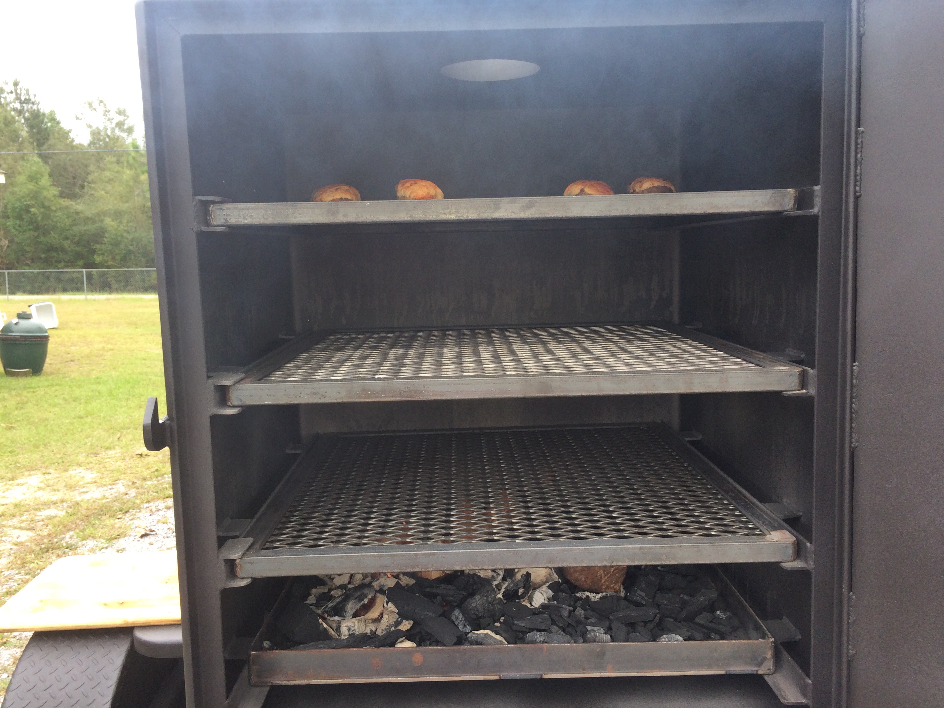 The horizontal chamer of Unit 6 idling at 225 for this evenings cook. The vertical chamber is running at 450 for the cook in progress.
