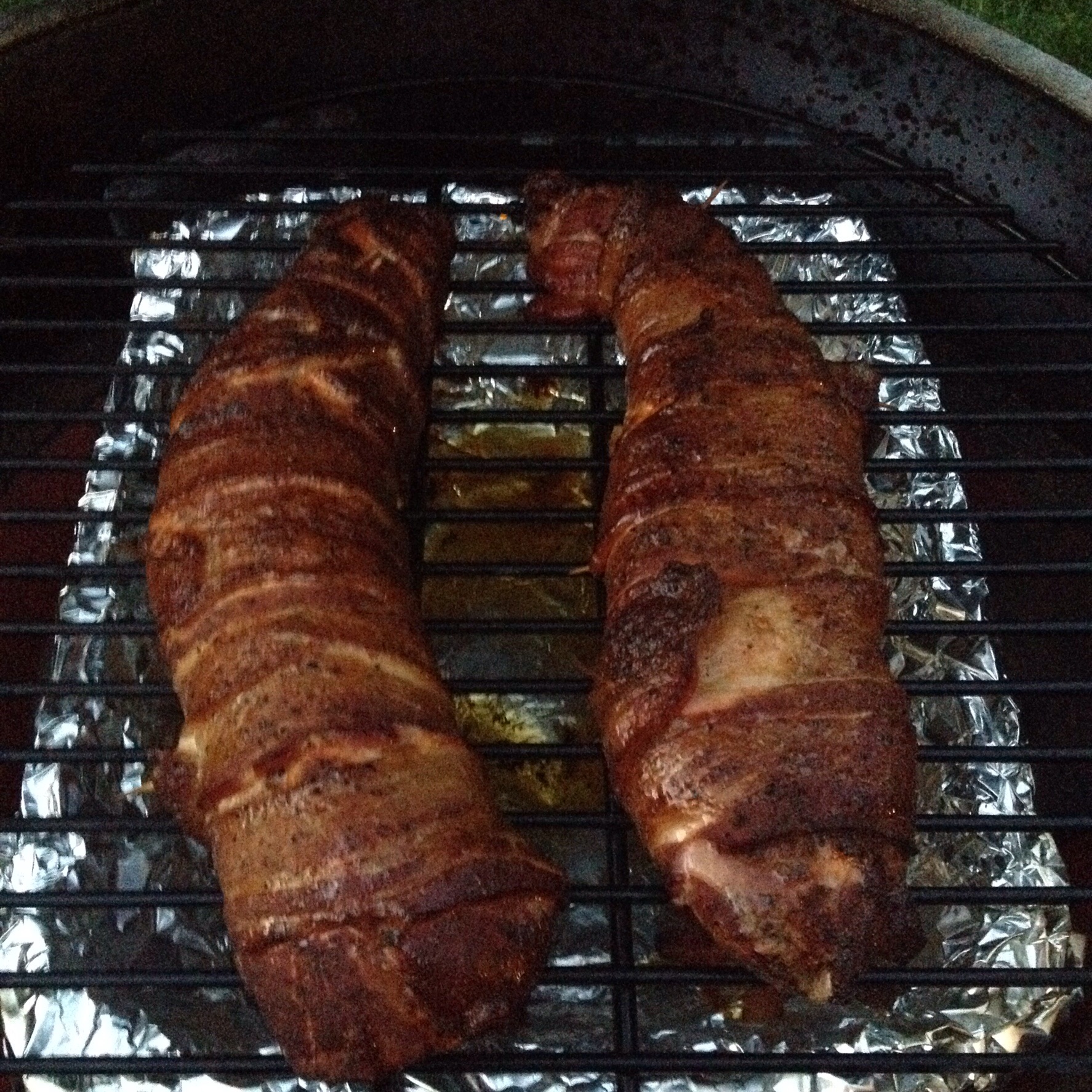 Tried a bacon wrapped pork tenderloin tonight. Put on my favorite rub. Wrapped in bacon. Indirect at 300 with Apple and hickory chunks. A+++!!!