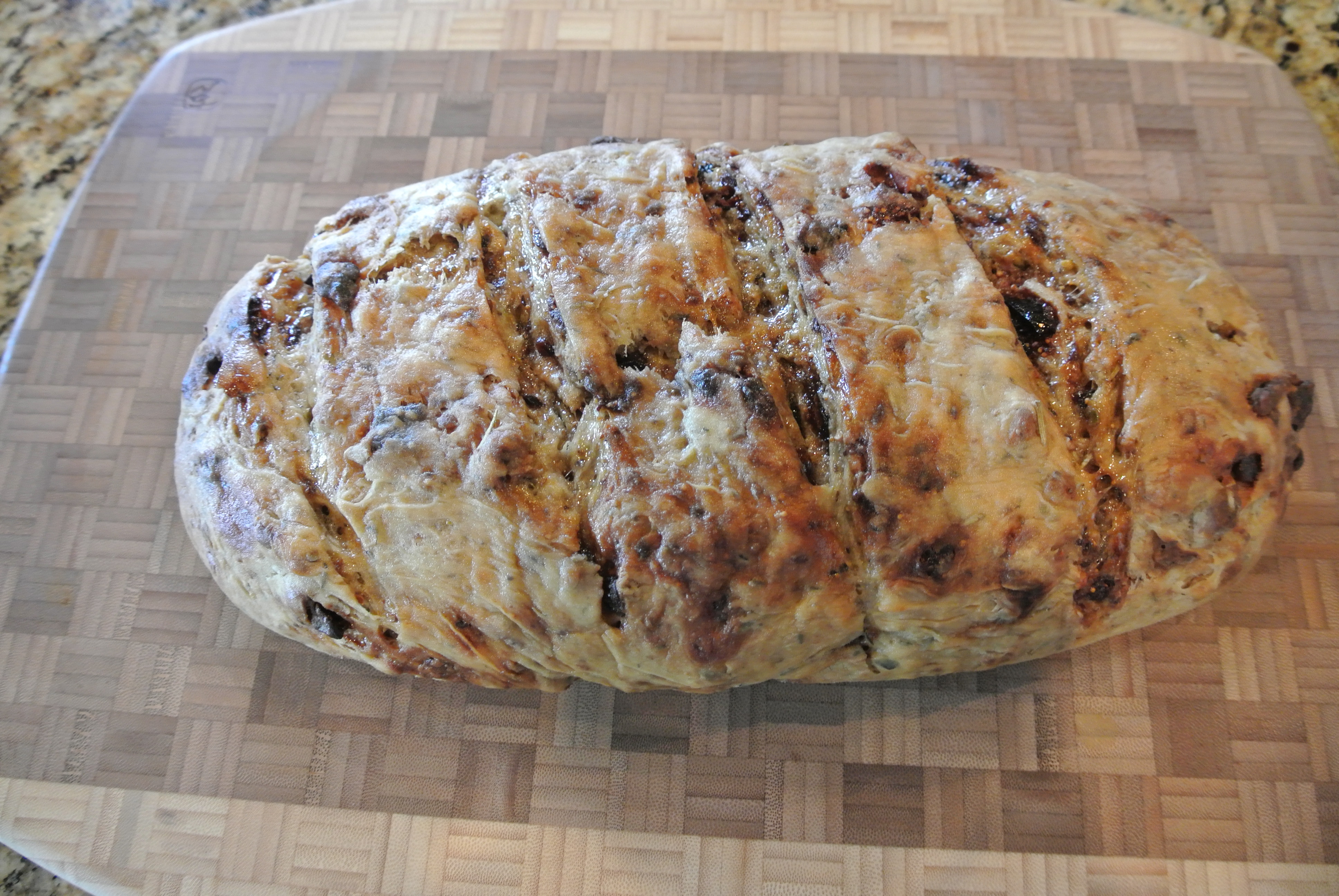I combined all the dry ingredients and mixed them together. I then added the oil and then the warm water. As the dough formed I added the nuts and figs. I kneaded the dough for about 4 minutes folding it over and pushing it down. I let it rise at room temp for a couple hours and then put it in the fridge overnight. Take it out of the fridge and let it come to room temp. work it into a loaf shape and punch it down. let it rise. and they bake at 375 for 45 mins or so. It was 190 IT when I pulled it.