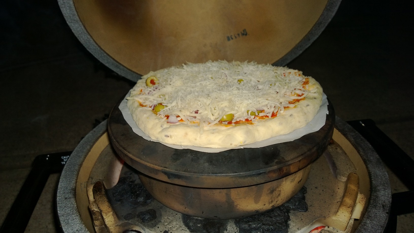 Nice pizza , and points for the improvisational skills with the raised rig!! Looks like it really helped with crispiness, fast cooking, etc.