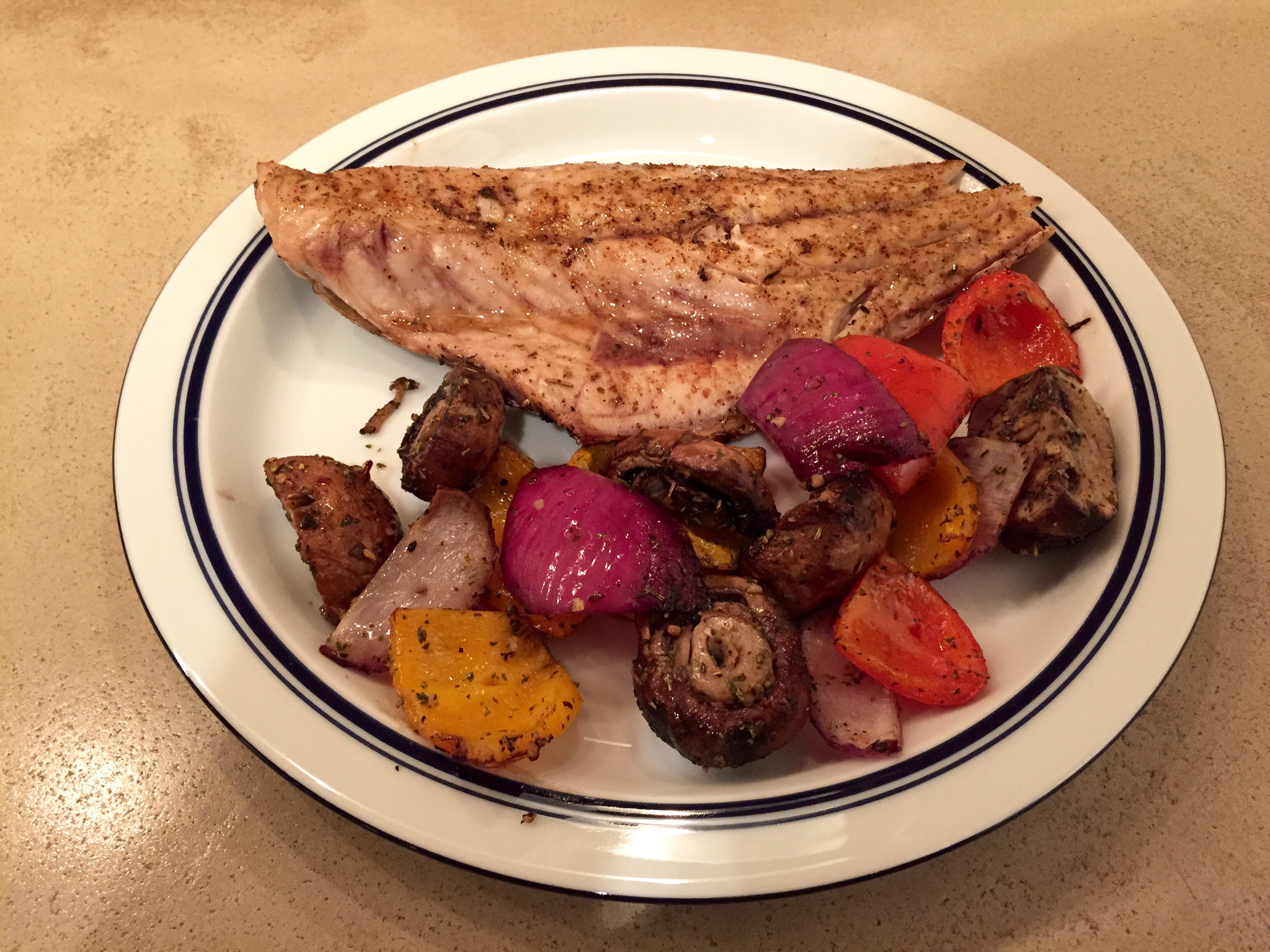 Howdy everyone...been lurking for way too long. Decided it was time to start contributing. Here is the redfish on the half-shell and vegetable skewers we did tonight. Pretty easy and pretty tasty. My bride says its healthy too...