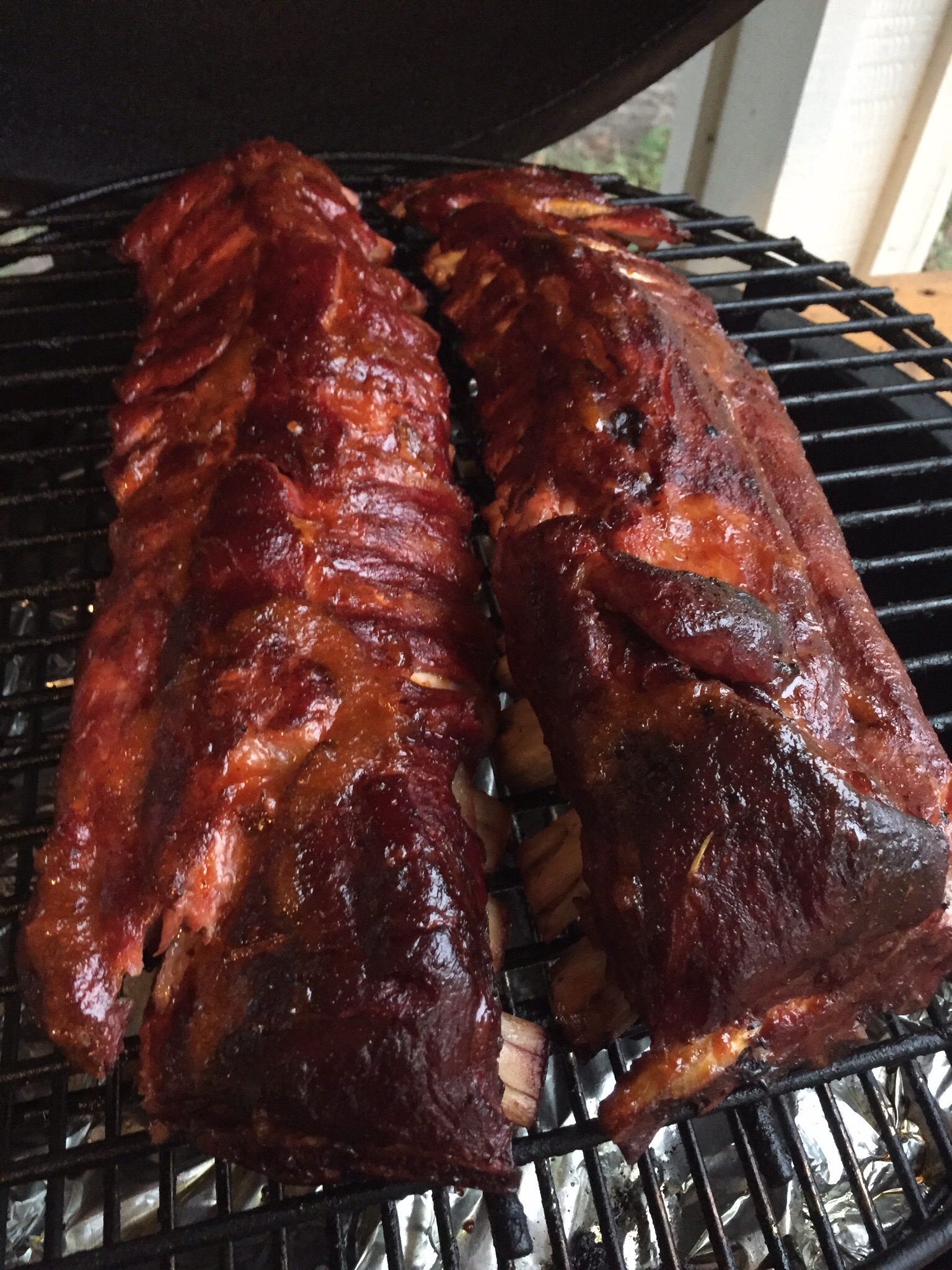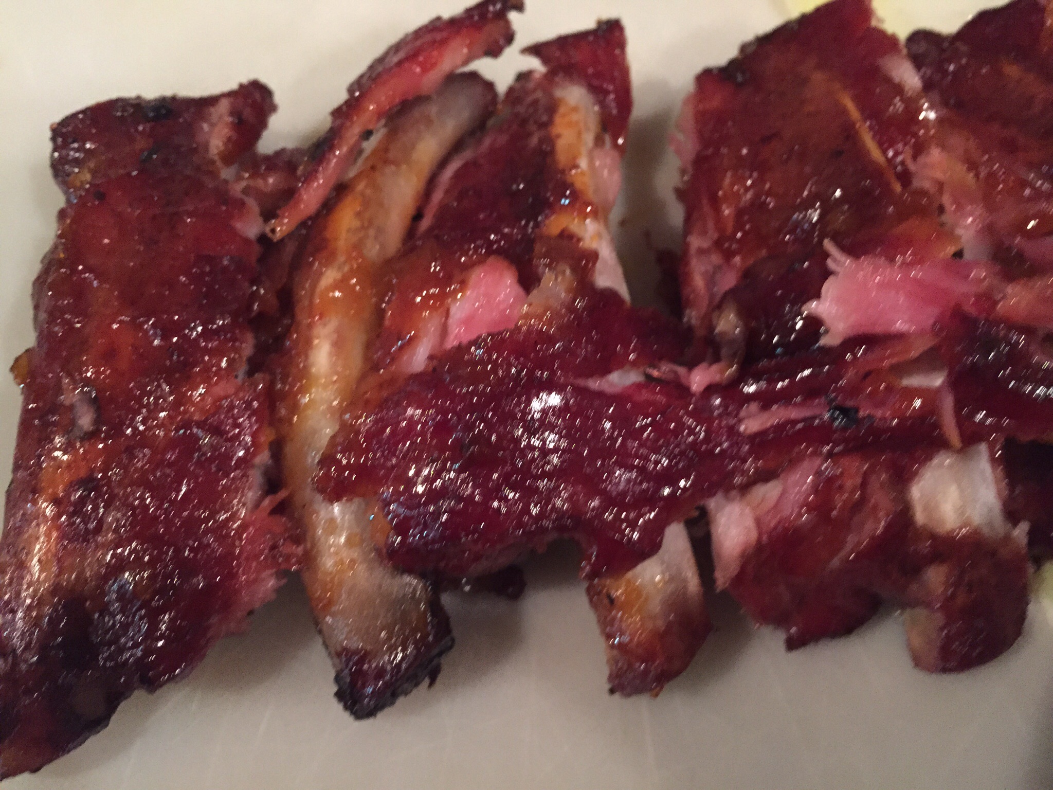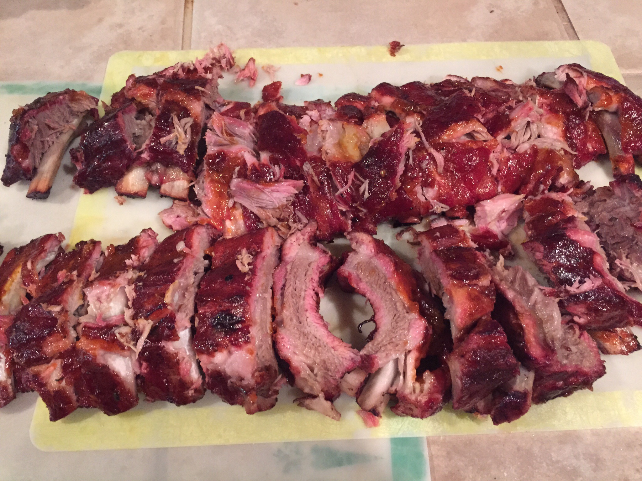 I think that after more than my share of failures I finally have ribs down. I'm using a lot less rub and a rich but not too sweet homemade sauce I found on Serious Eats. I'm loosely using the technique from Aaron Franklin's YouTube video.