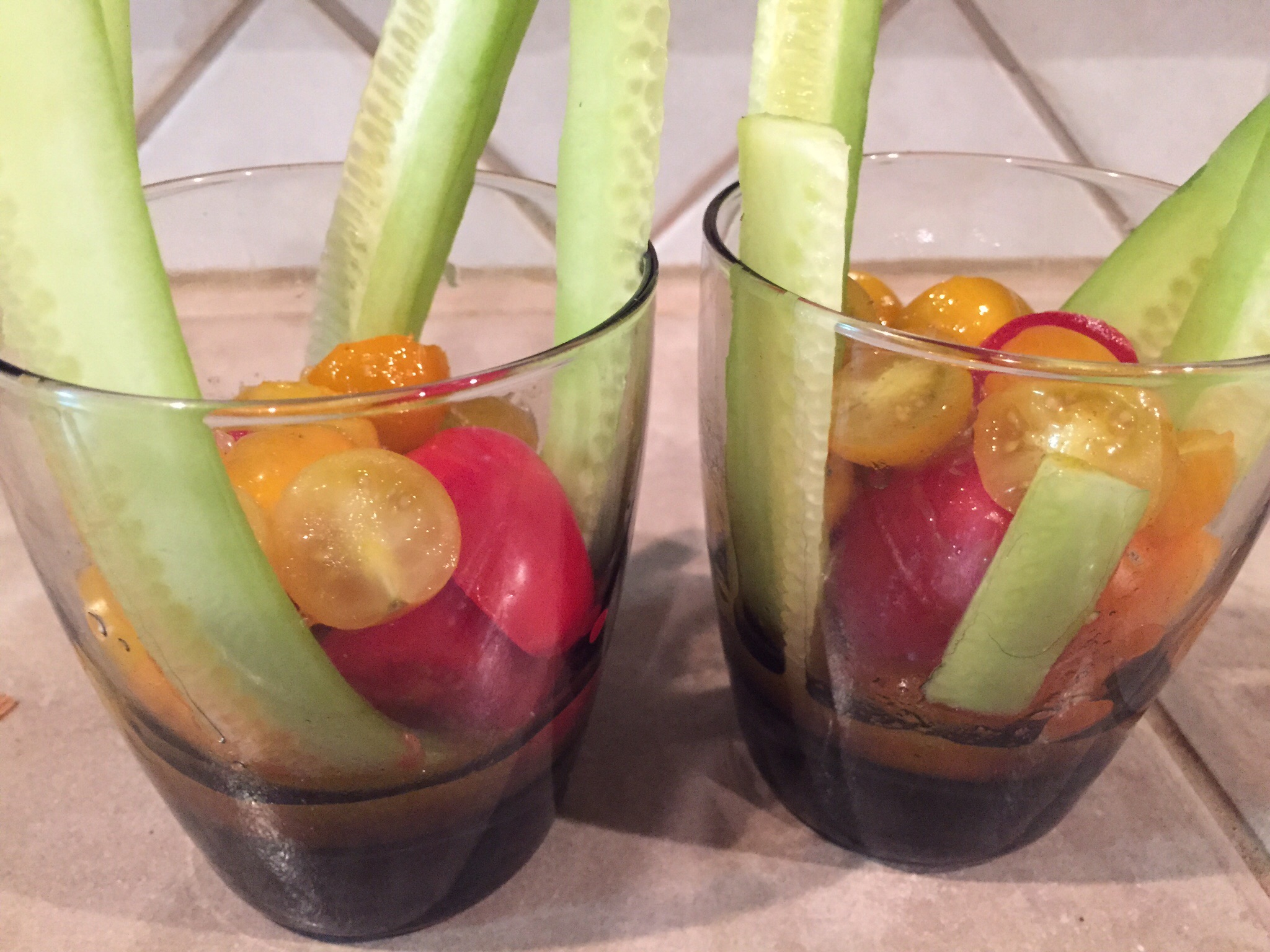 Sides were Bloody Mary Tomato & Cucumber Salad and a bowl of fresh berries.