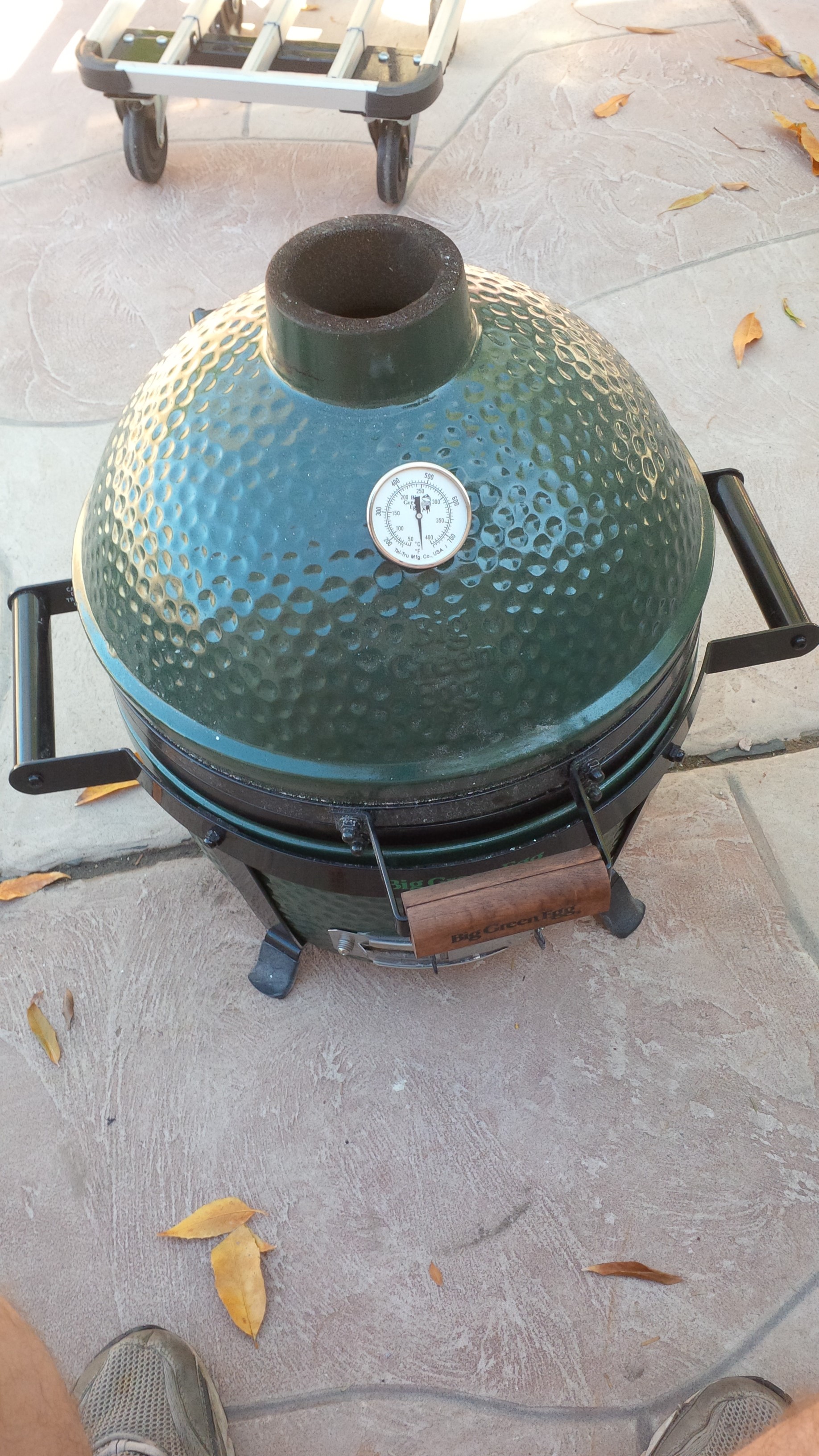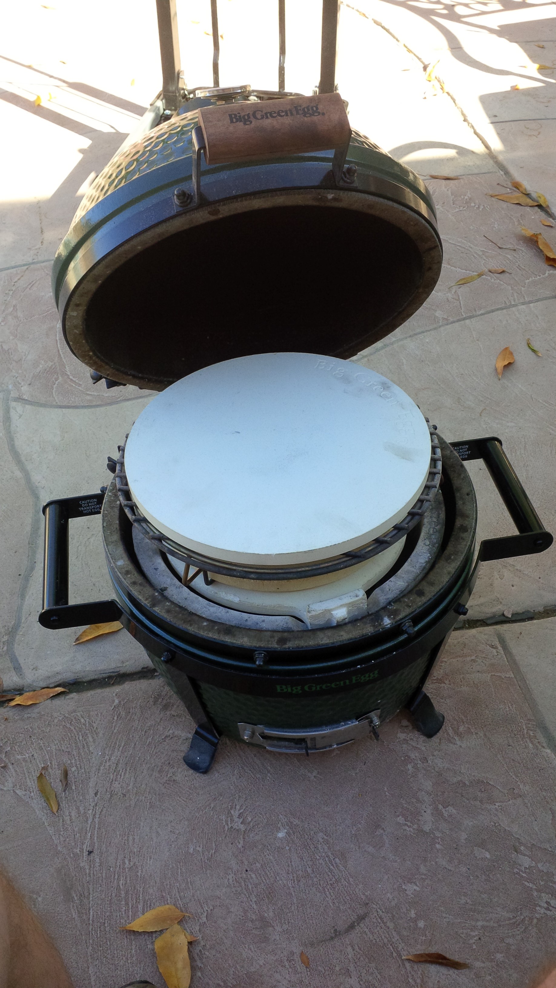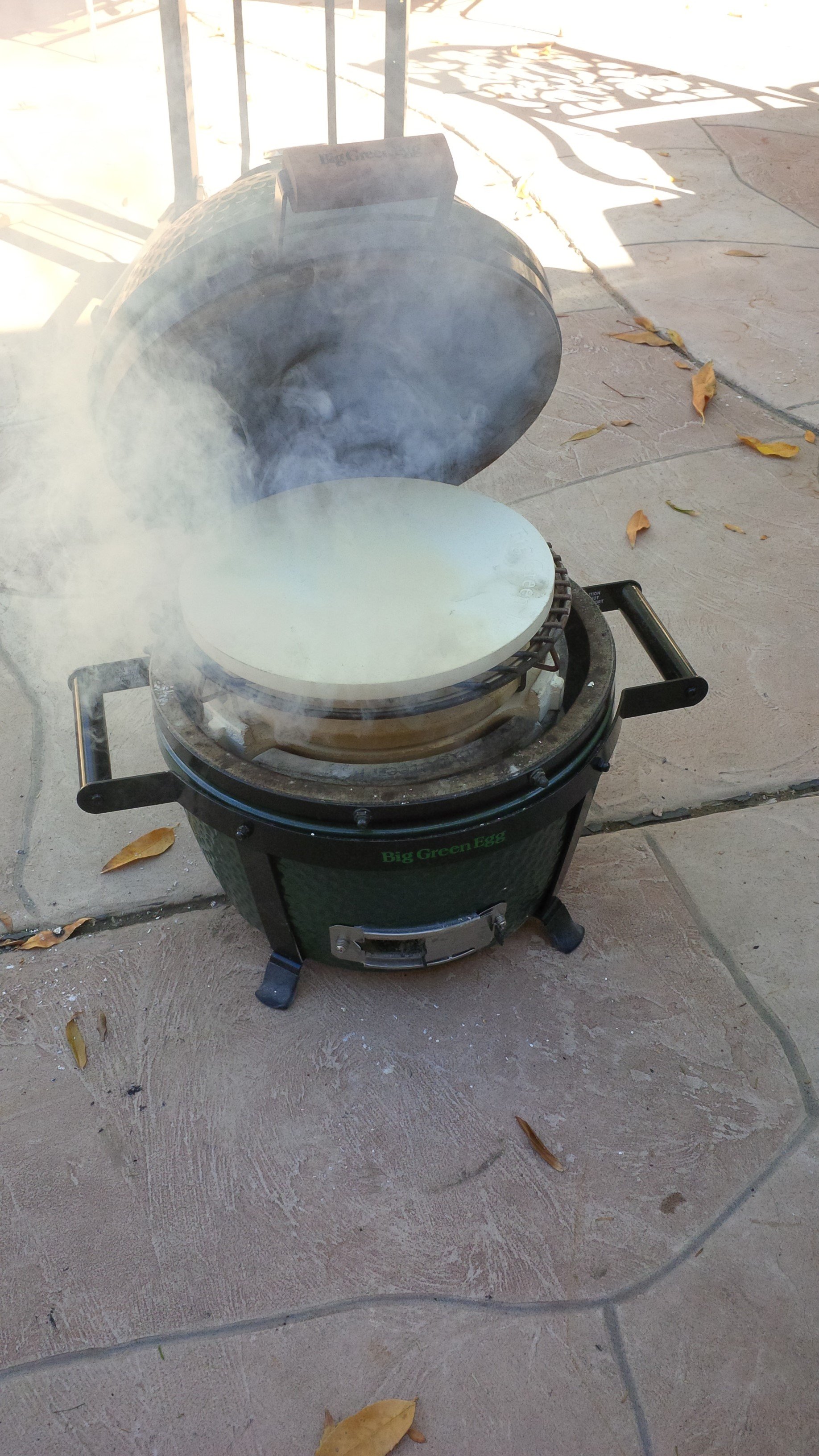 I like the setup, can't wait to see pizza pics.I use the woo / 13" BGE pizza stone on my small all the time and make fantastic pizzas every single time. Since the mini max is the same diameter i'm sure you will have similar successful results. After all the 13" stone is the one BGE sells for the small / mini max eggs, I tend to think they know what they are doing..Large & Small BGE, CGW Two-Tier Swing Rack for BOTH EGGS, Spider for the Wok, eggCARTen & and Cedar Pergola my Eggs call home in Edmond, OK.