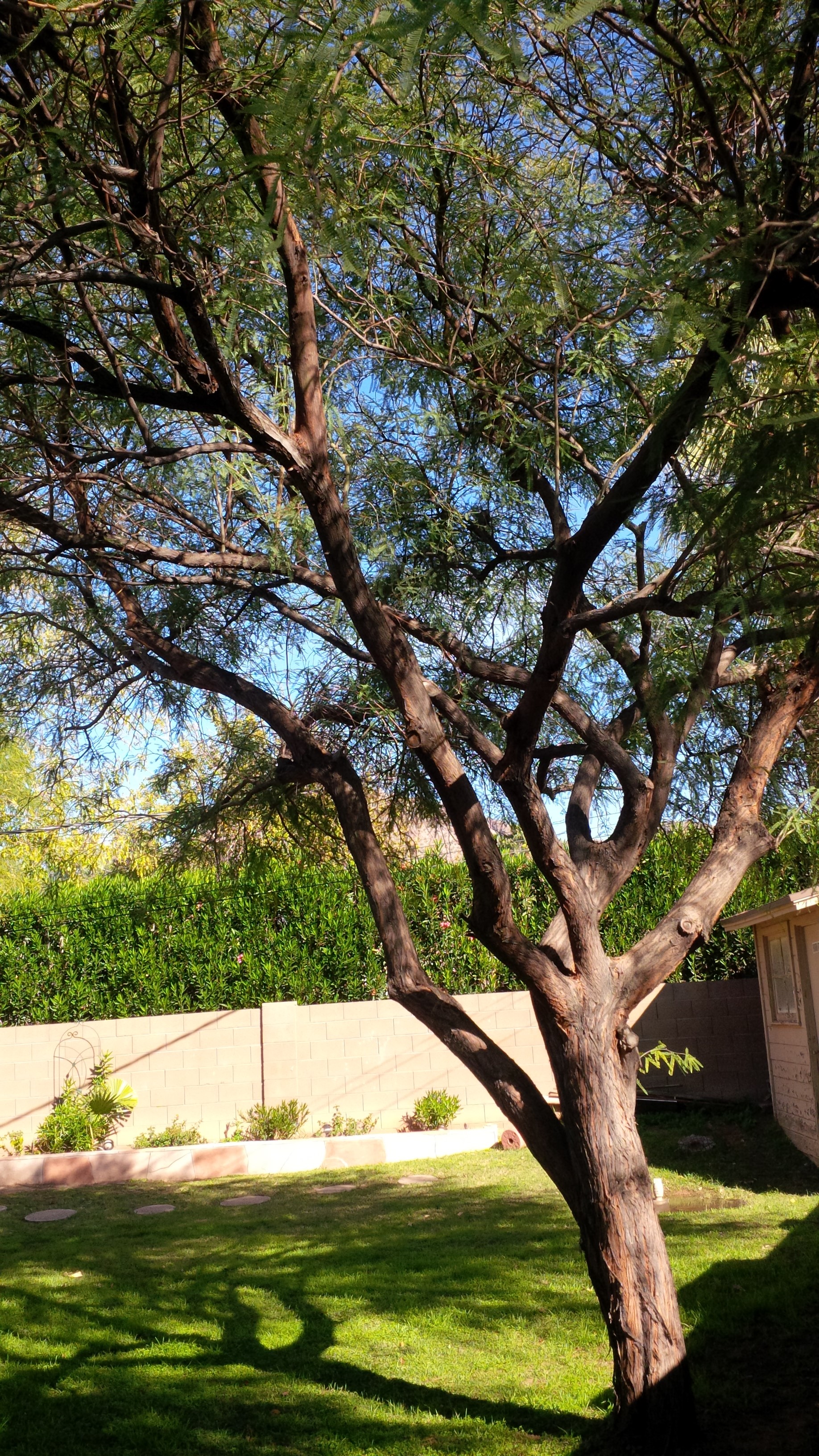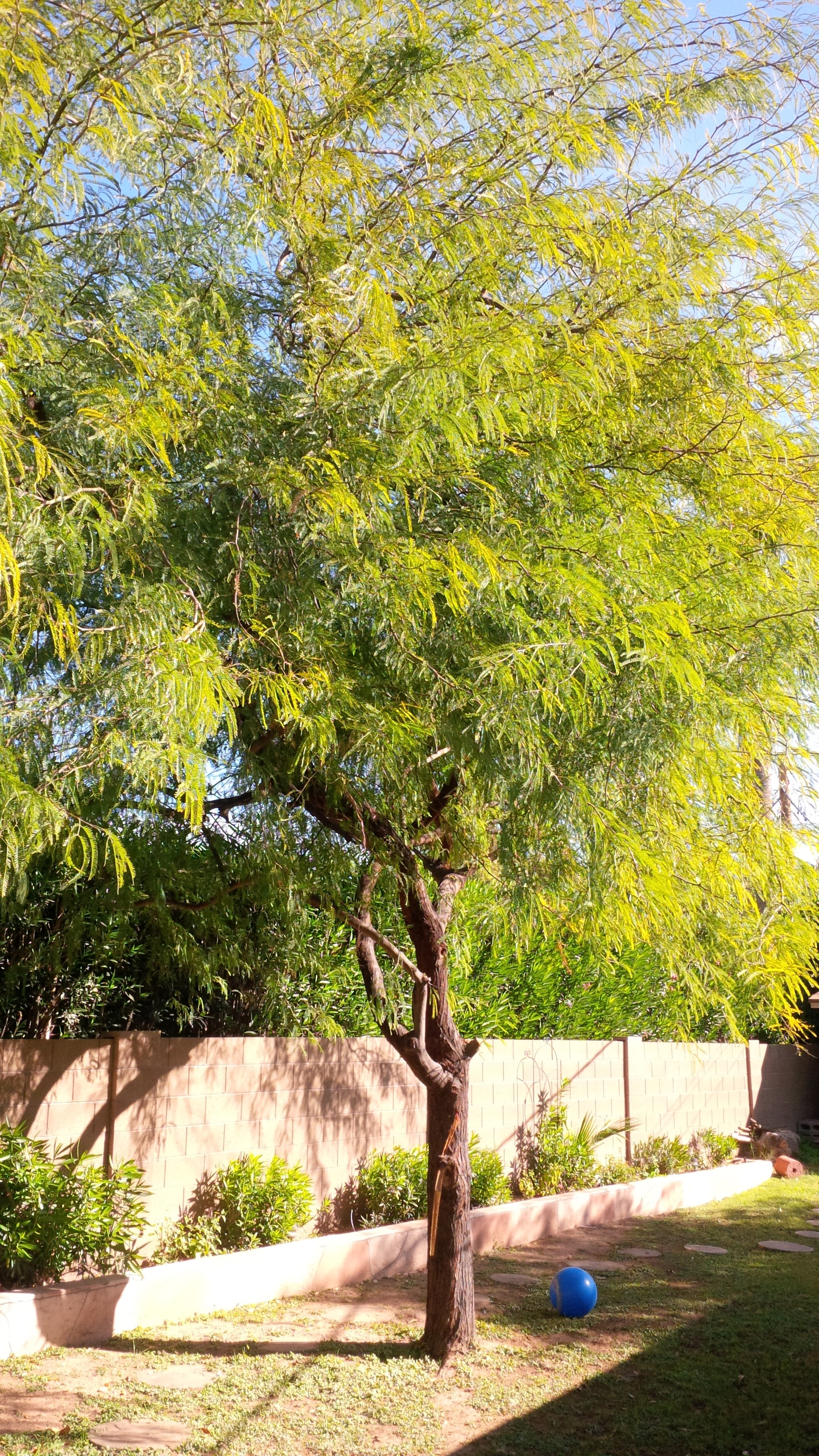 I actually had higher temps with the woo/stone setup than I did with the platesetter for the MiniMax. 700F was easy with the woo/stone and the highest I got with the PlateSetter was 650, still plenty hot for my pizza making process. It held for at least two hours, rock-steady and I used mesquite wood this time with some Cowboy lump to start the fire with. The mesquite burns really hot and this was just a couple of sticks. I added some picts of the two mesquite trees in my backyard that I harvest the wood from. These are the trees that helped me produce 1200F on the XL with the blue flame coming out of the top which was posted on another thread in this forum.