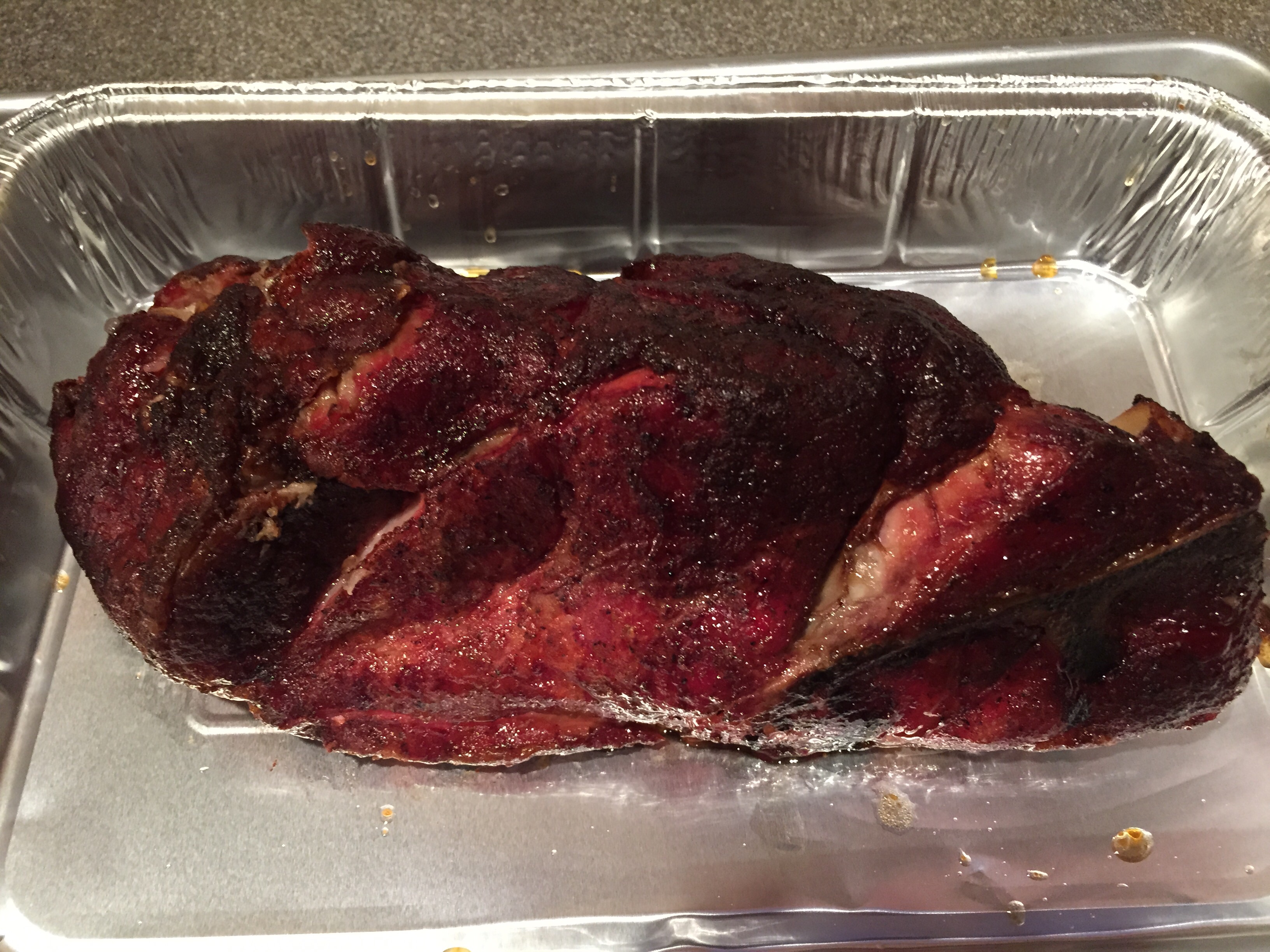 It took longer than I expected so I had to bump up the temp to 275. I think I prefer the Chris Lilly rub over Bad Byrons.