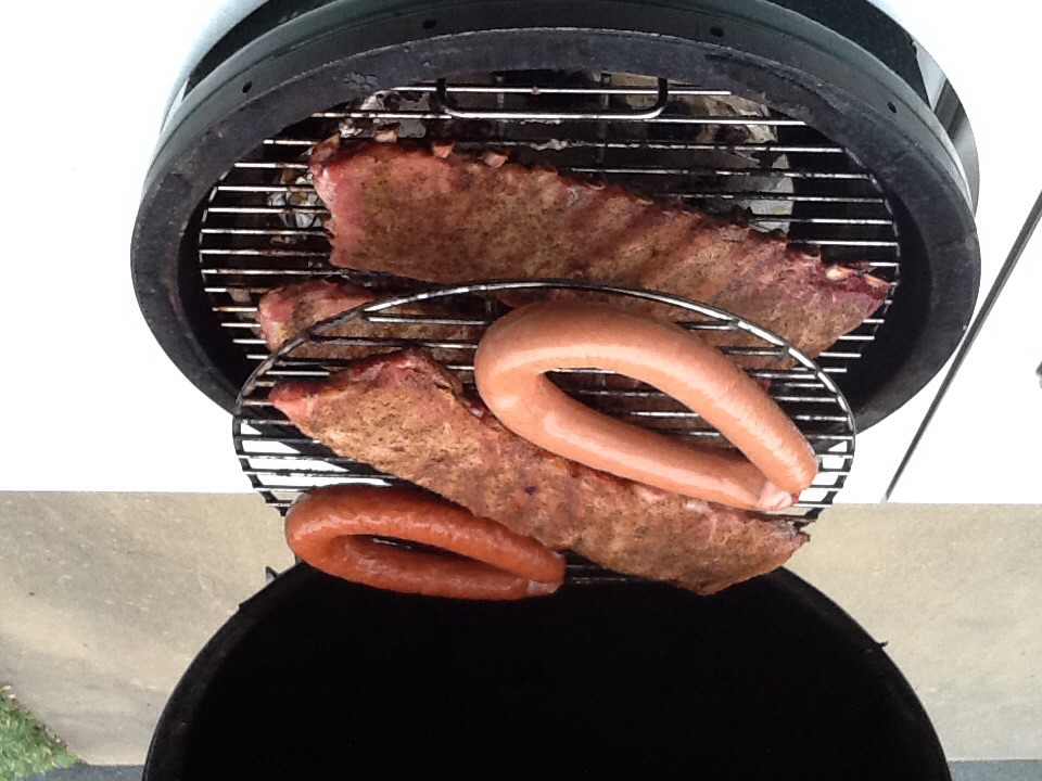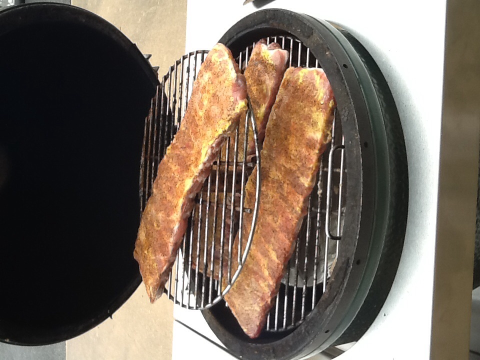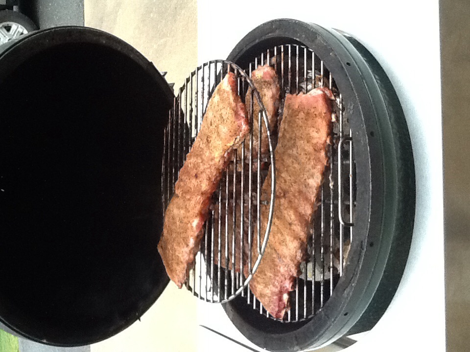 How does the egg stay in the table upside down and the ribs stay on the vertical grate? B-)