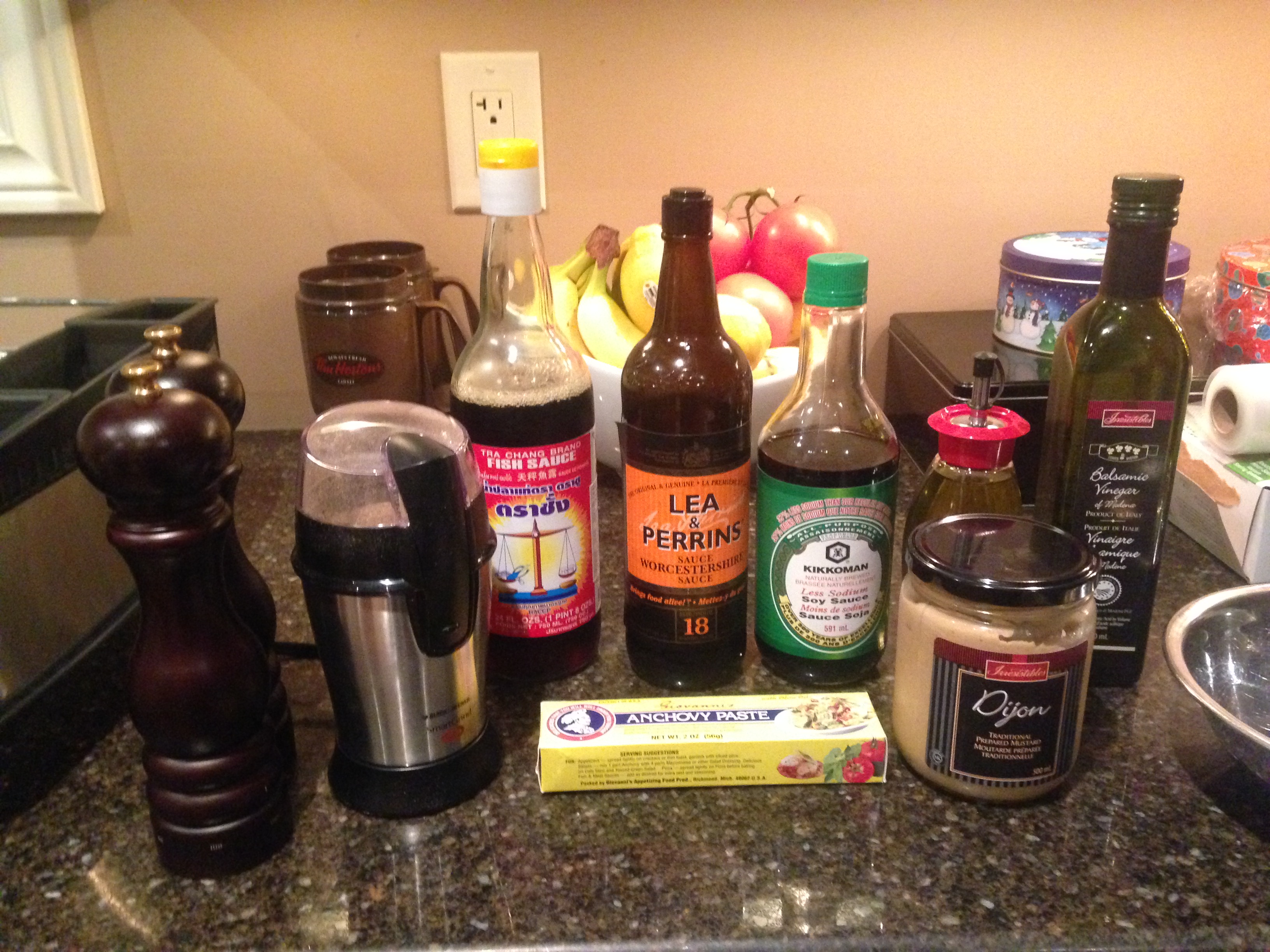 Marinade contains Soya Sauce, Worchestershire, Dijon, Balsamic, Fish Sauce, Anchovy Paste, Mushroom Powder, Olive Oil