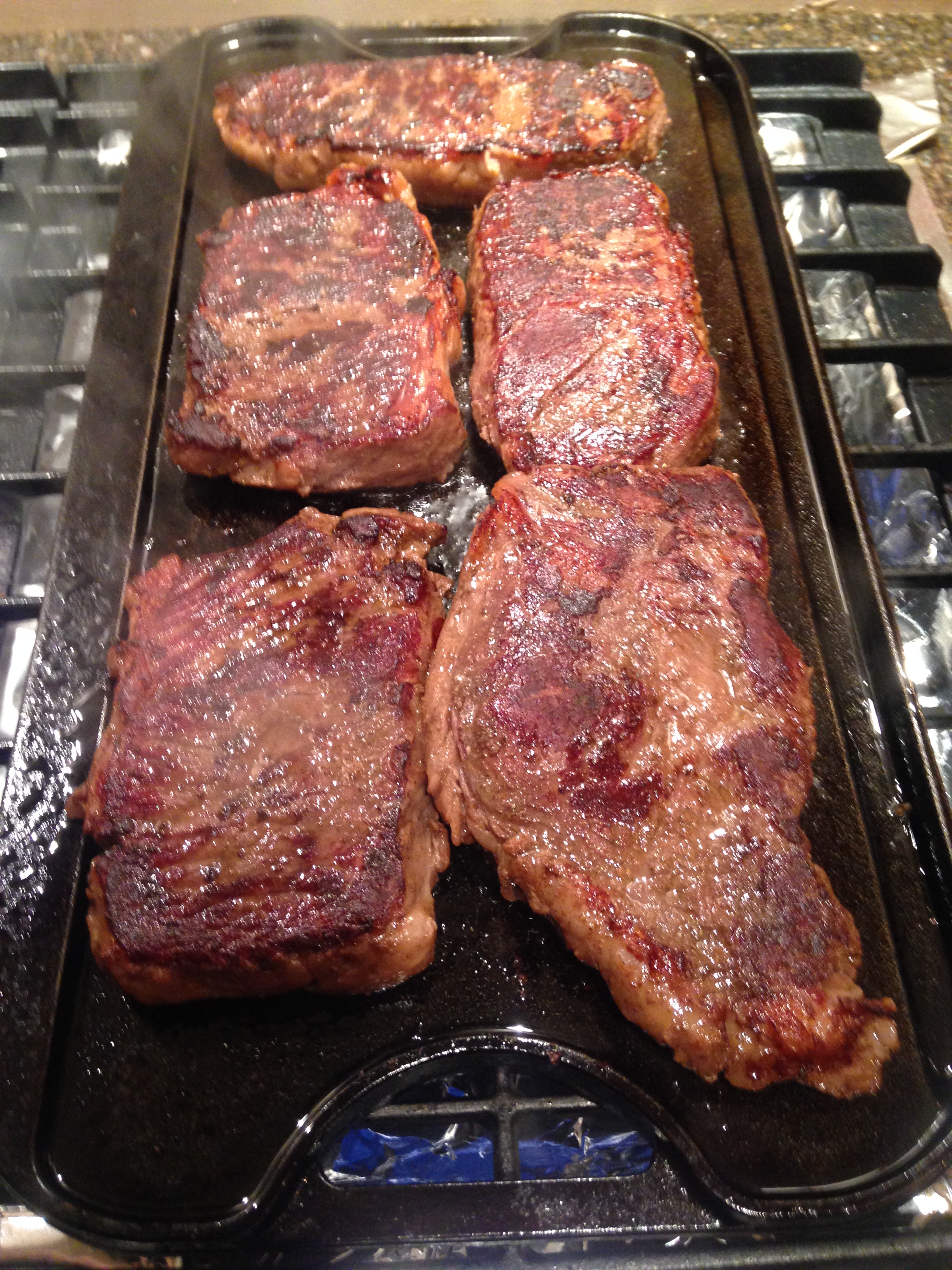 I heated the cast iron griddle up to just about 500'F before these went on with a light drizzle of Peanut oil