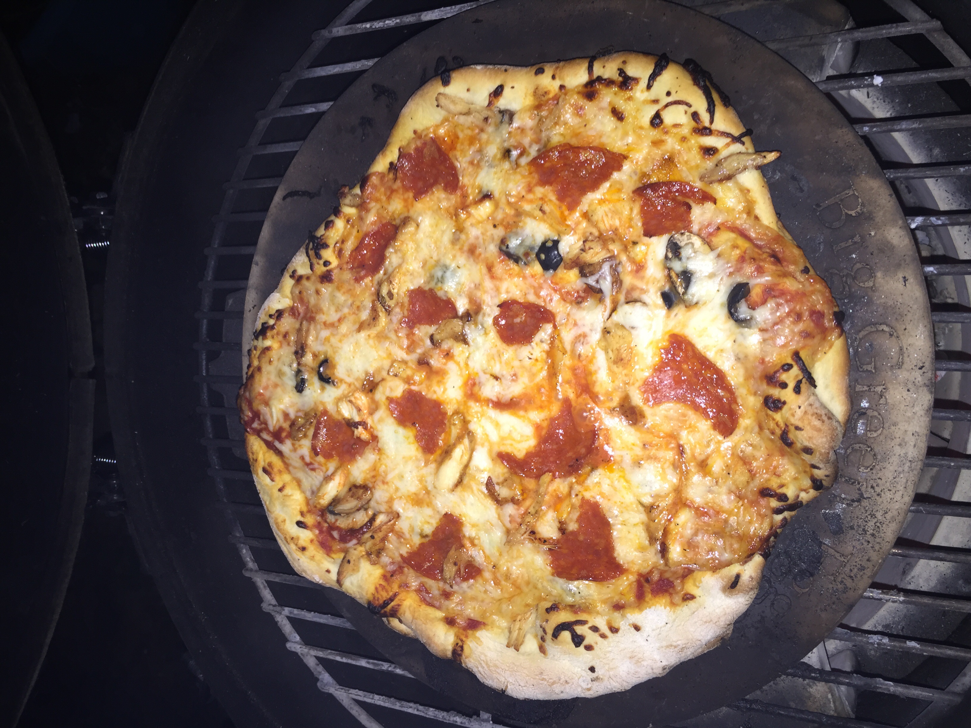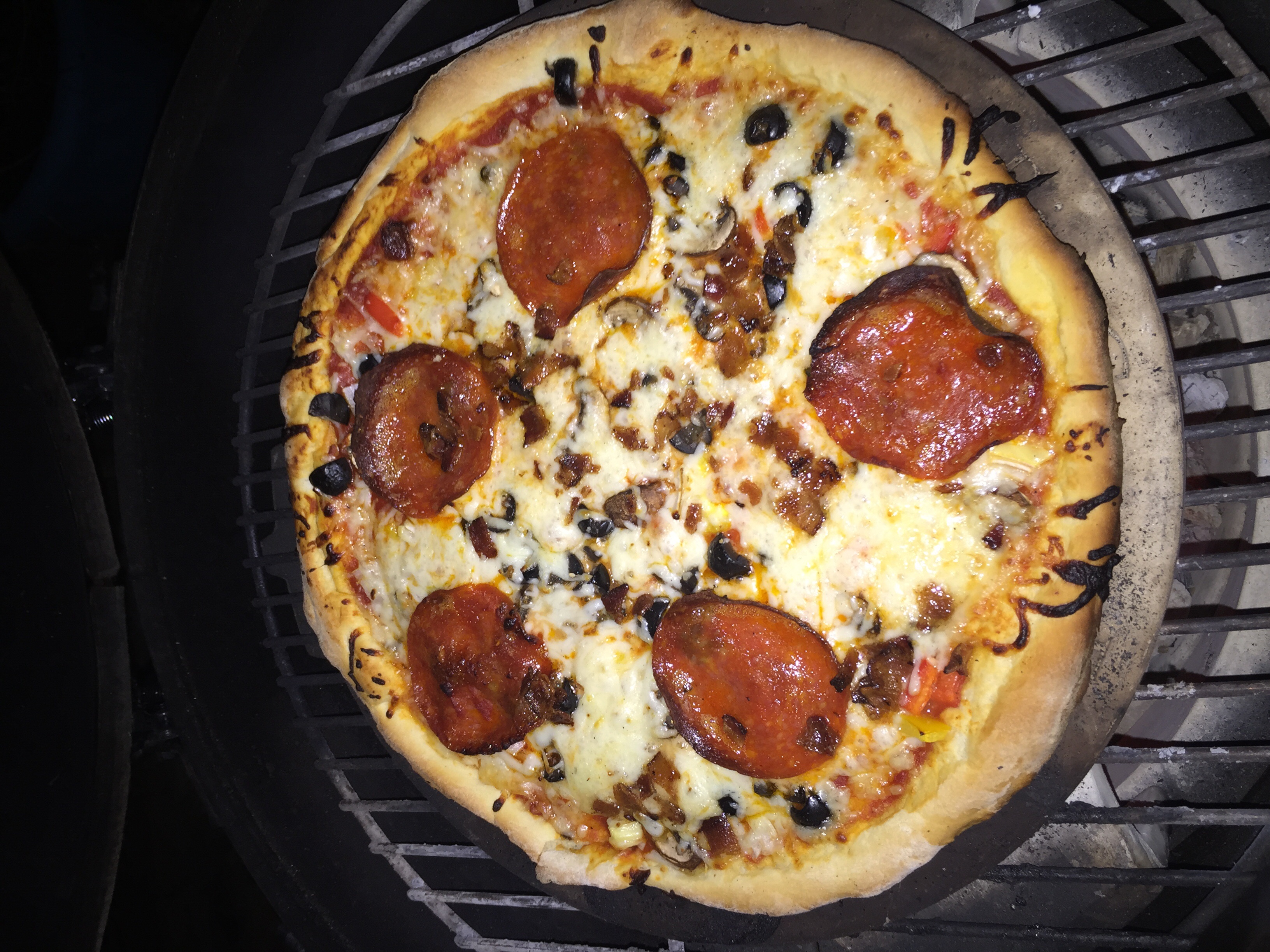 Thanks. My wife makes the crust using King Arthur flour. Practice does help and sometimes we use a pampered chef grilling pizza pan. The temp tonight was ranging from 650 to 725 that seems to be the money spot for the ideal crunch and crisp crust. We also use fresh mozzarella when we can.