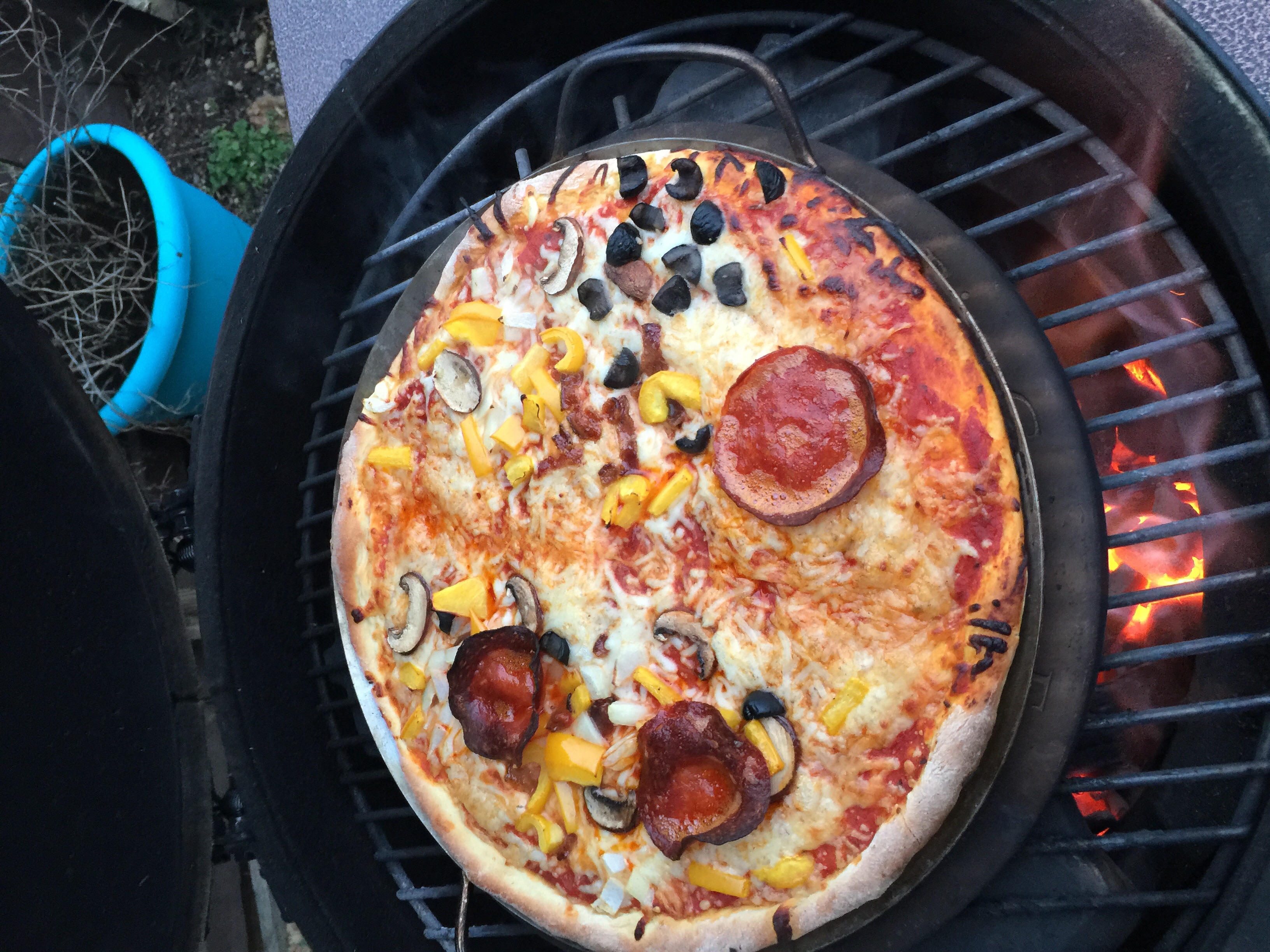 Nicely done. I did for the first time a few weeks ago and my 5 year old didn't like it. The first one it burnt the crust a little and another one he didn't like the crust.XL, WSM, Coleman Road Trip Gas GrillKansas City, Mo.