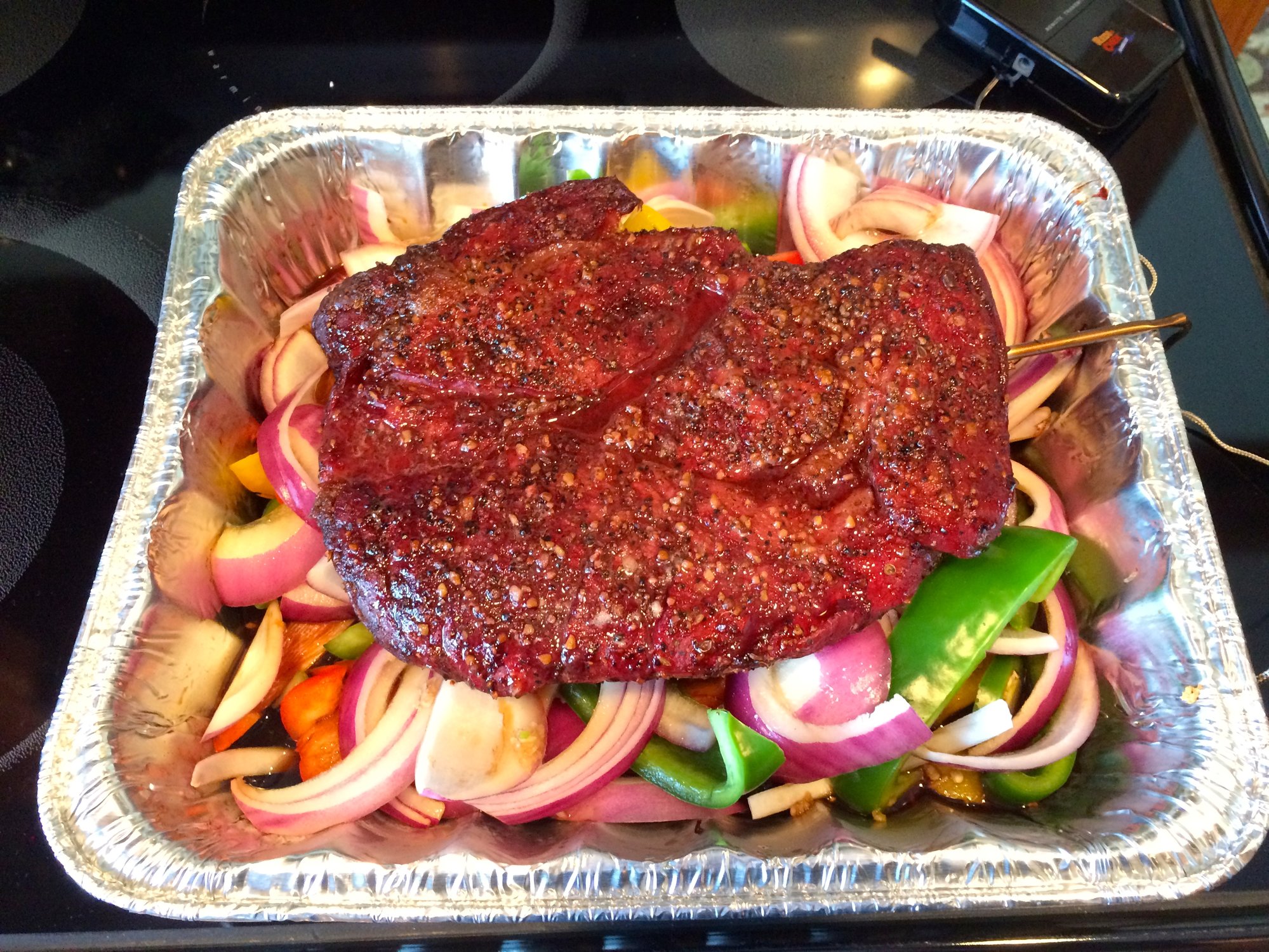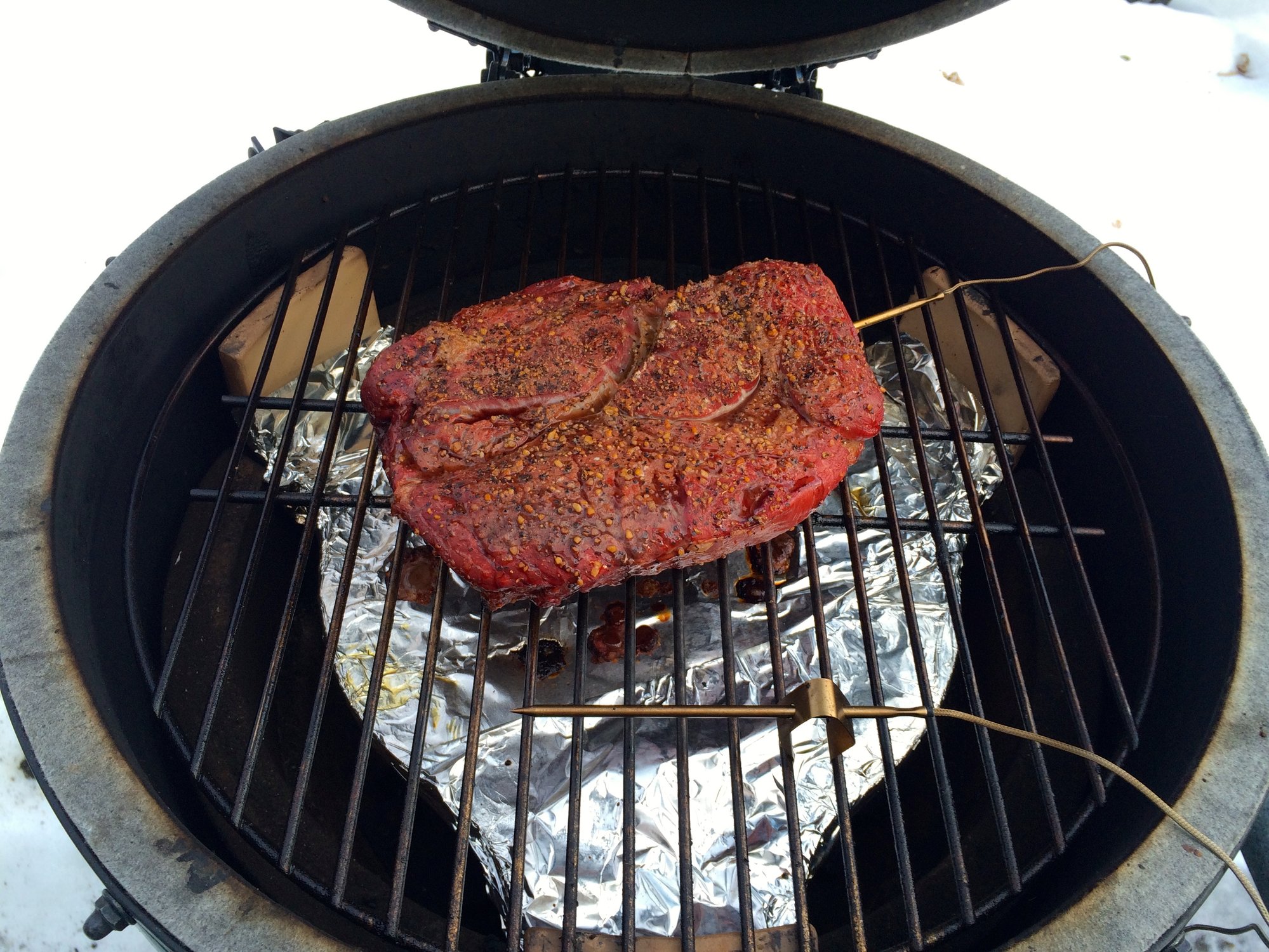Pepper Stout Beef (added some hickory chips for smoke) - http://wolfepit.blogspot.com/2009/10/pepper-stout-beef.html