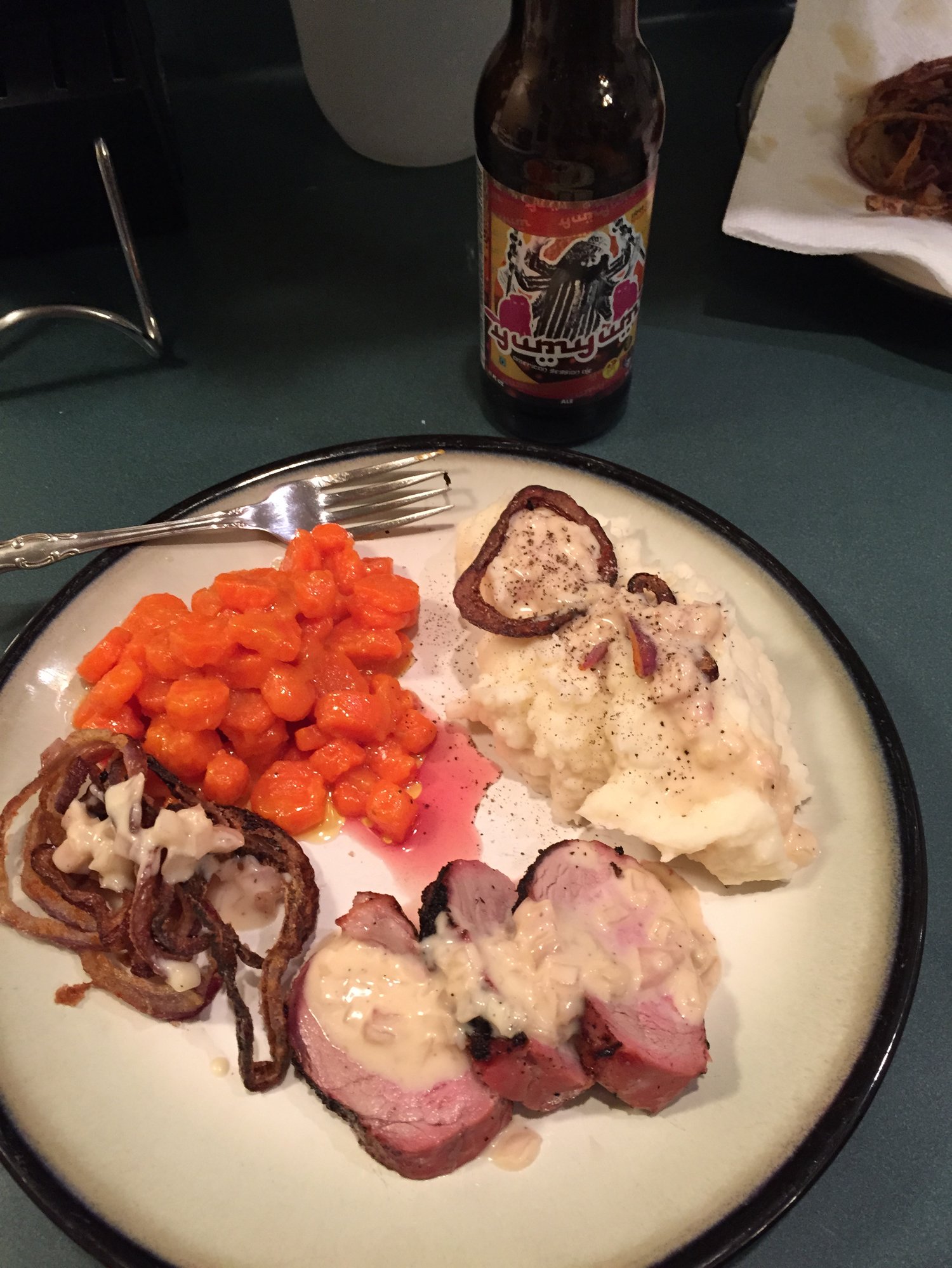 I was craving a meal from one of my favorite restaurants in Memphis called The Majestic Grill. It is a pork tenderloin with a maple cream sauce, sugar glazed carrots, tobacco onions, and mashed potatoes. I started to do some research for the recipes when I found this little gem: http://www.memphismagazine.com/March-2007/Pork-Tenderloin/ It was just about spot on when the actual chef makes it. The only thing I would suggest is to maybe only do have of the shallot and double the amount of the maple syrup. Other than that, fantastic! Even the wife said if was about as spot on as good be.
