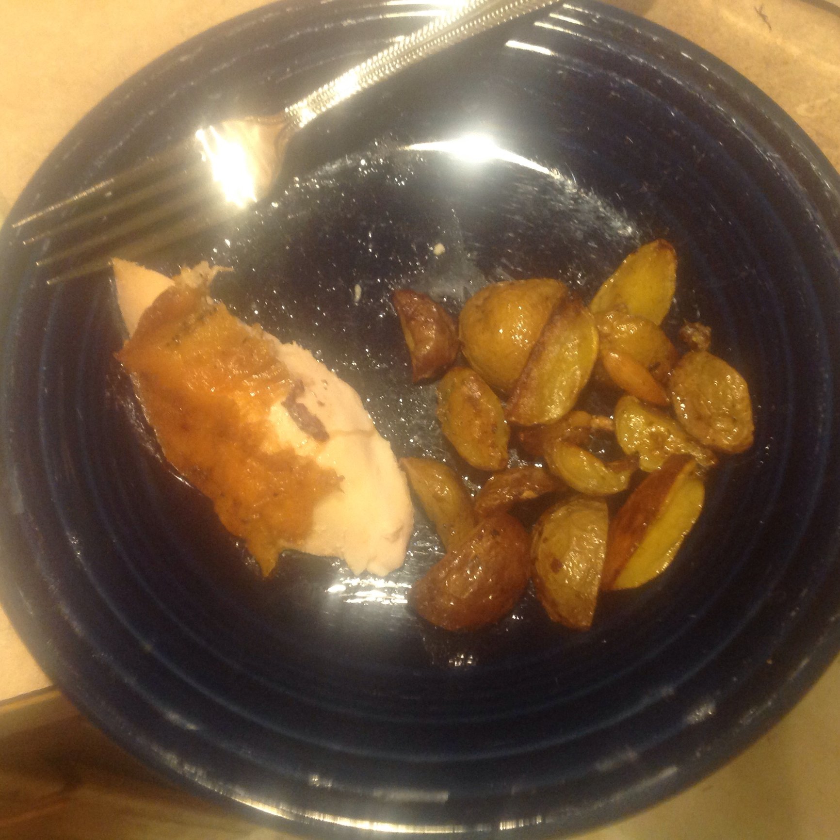 The chicken turned out amazing...always pleasantly surprised with just how juicy it stays. Skin was nice and crisp. But the potatoes - oh, the potatoes! They were amazing! My oldest had three helpings! Definitely a do-over.