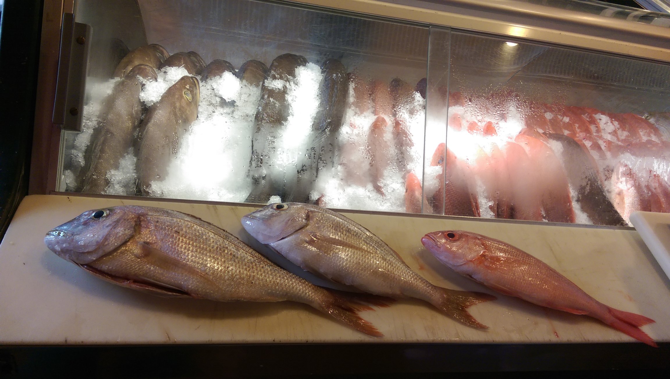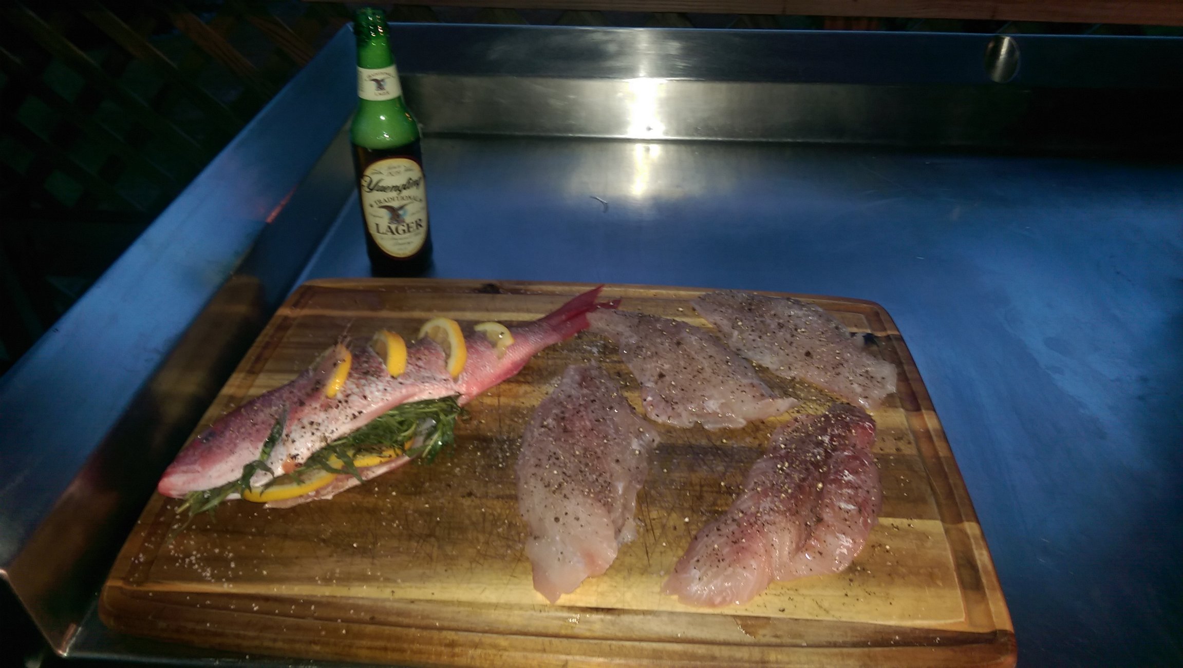 Picking out some fish. I went to Safe Harbor Seafood Market. These were just unloaded from the boats wild caught in the Jax Atlantic area. B-Liner and Pink Snapper were what I decided on. Kept the Vermilion whole and the Pink Snapper filleted out.